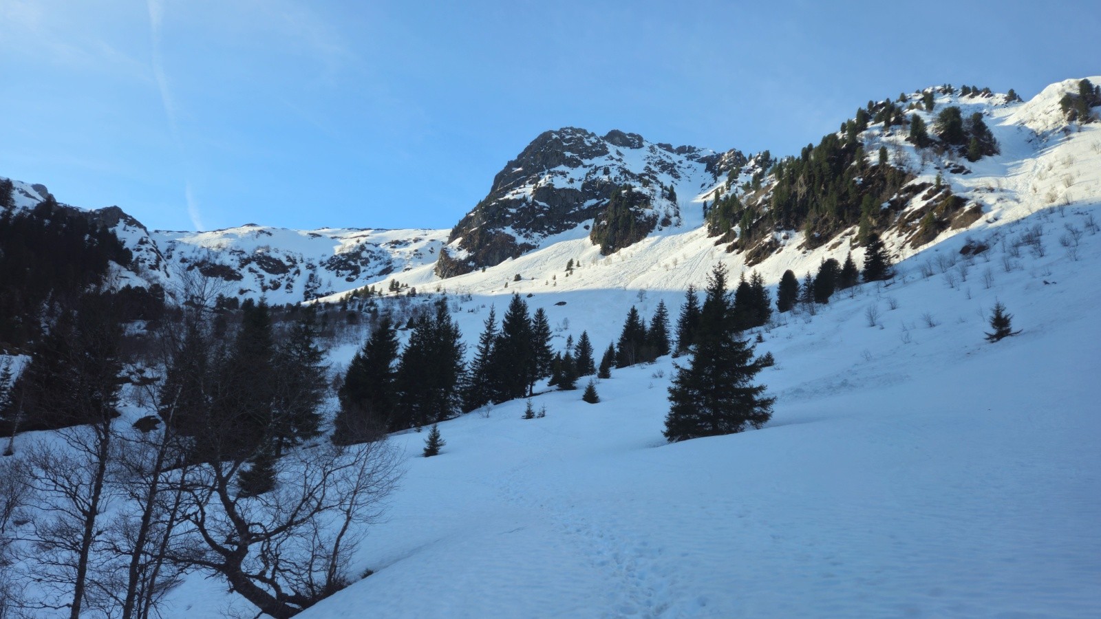 On s'est donc limités au tour du Roc de Pendet, une bien jolie boucle qui me permet de faire découvrir les 7Laux en hiver au fiston, et il a aimé!