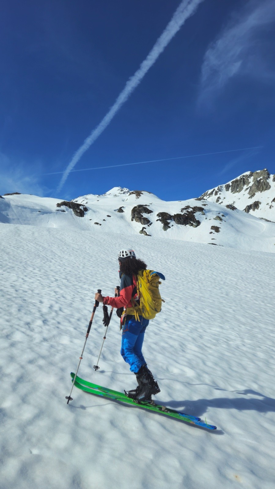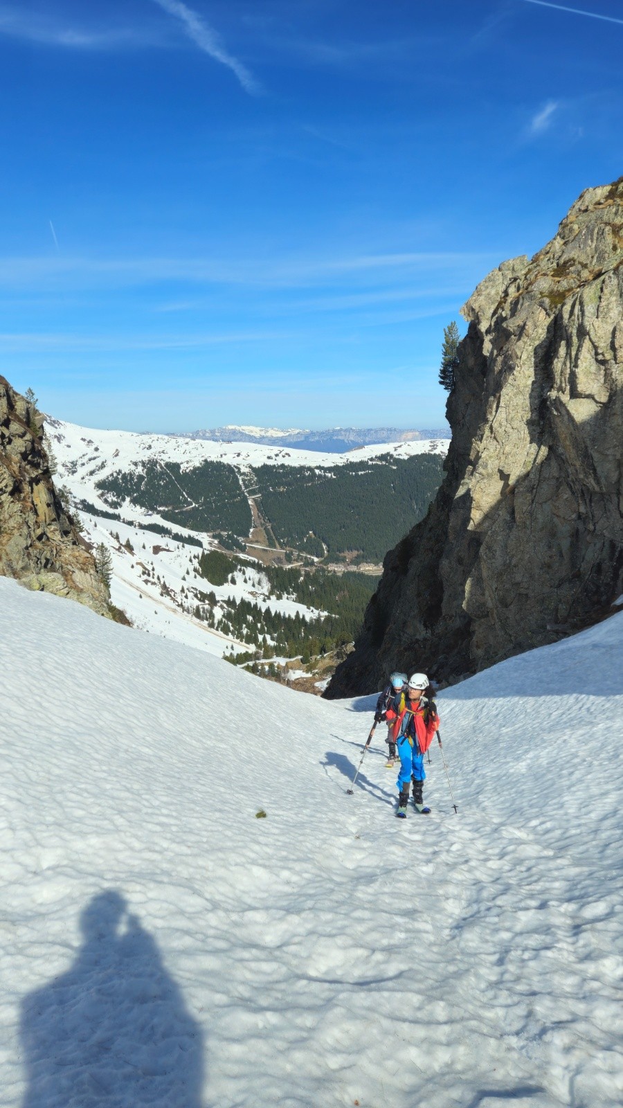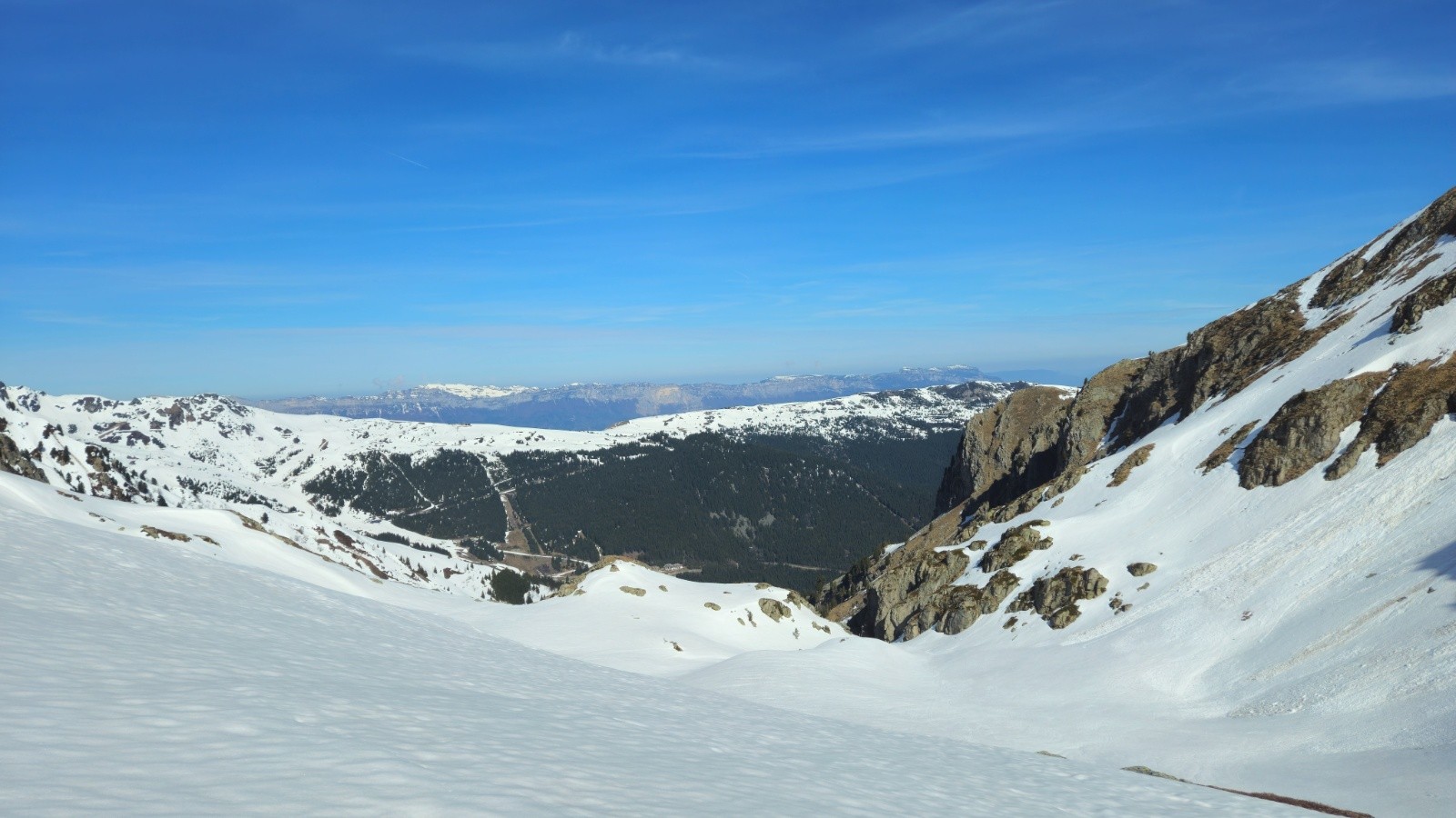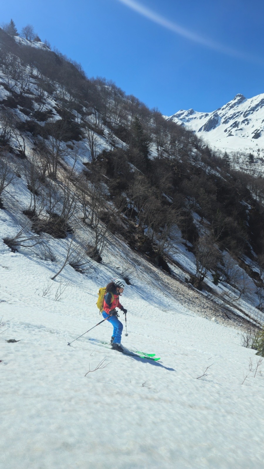 Conditions pour le ski : moquette en sud à 11h, en NW bon grip en haut, puis assez molle mais bonne jusqu'au ond du vallon sous le Pleynet