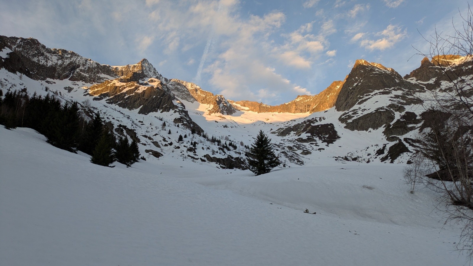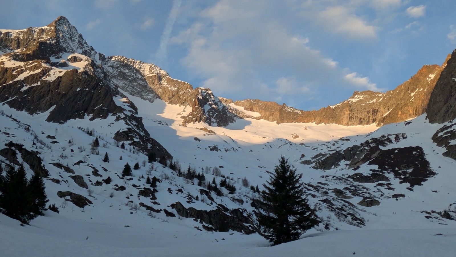 Découverte d'un nouveau vallon au dessus de Saint Christophe. Après un portage super efficace on chausse 100m sous le refuge. La montée se passe très bien jusqu'à la barre rocheuse à presque 3000m. Cette barre passe très bien en diagonal mais au delà c'est très compliqué : regel superficiel avec 1m de neige pourrie en dessous. Après 10 minutes de galère on lâche l'affaire et on fait demi tour... Ca sera pour une prochaine!