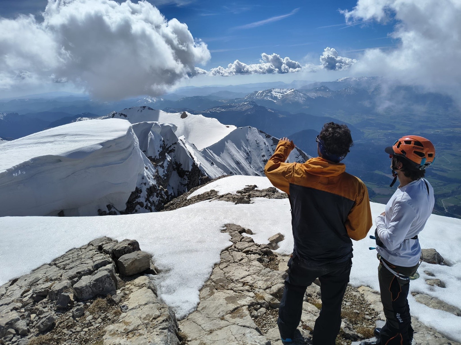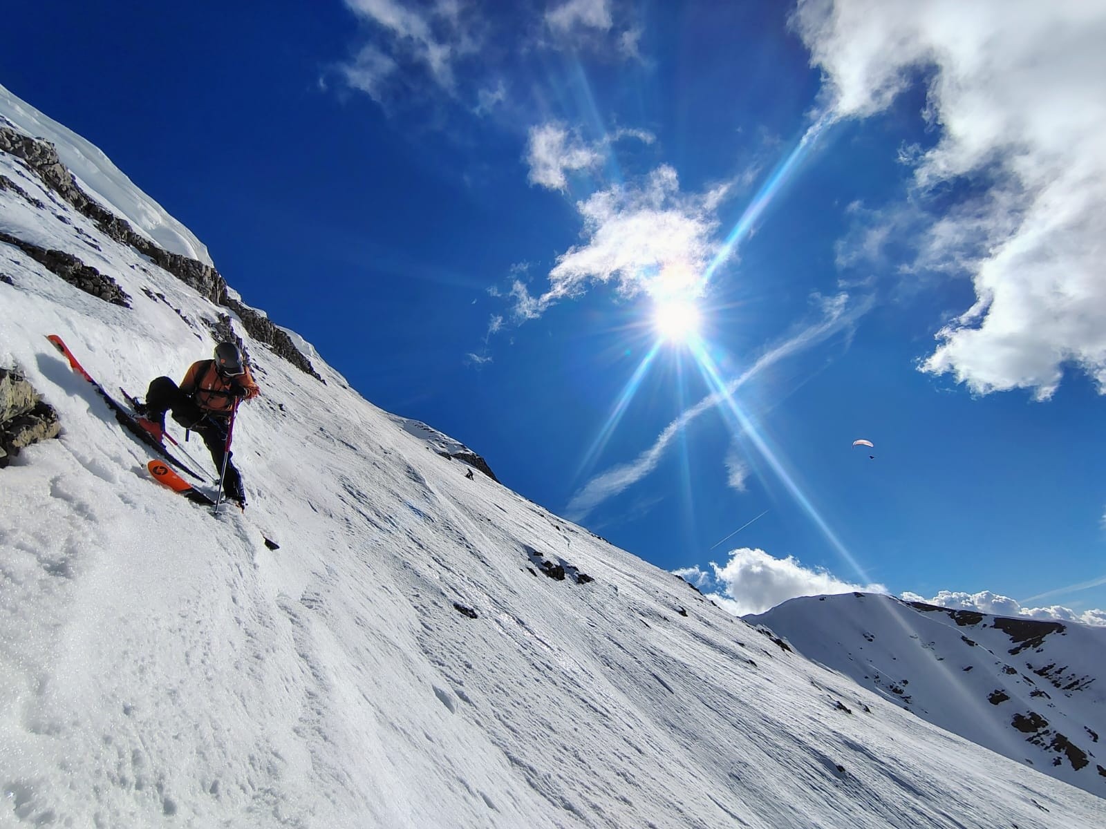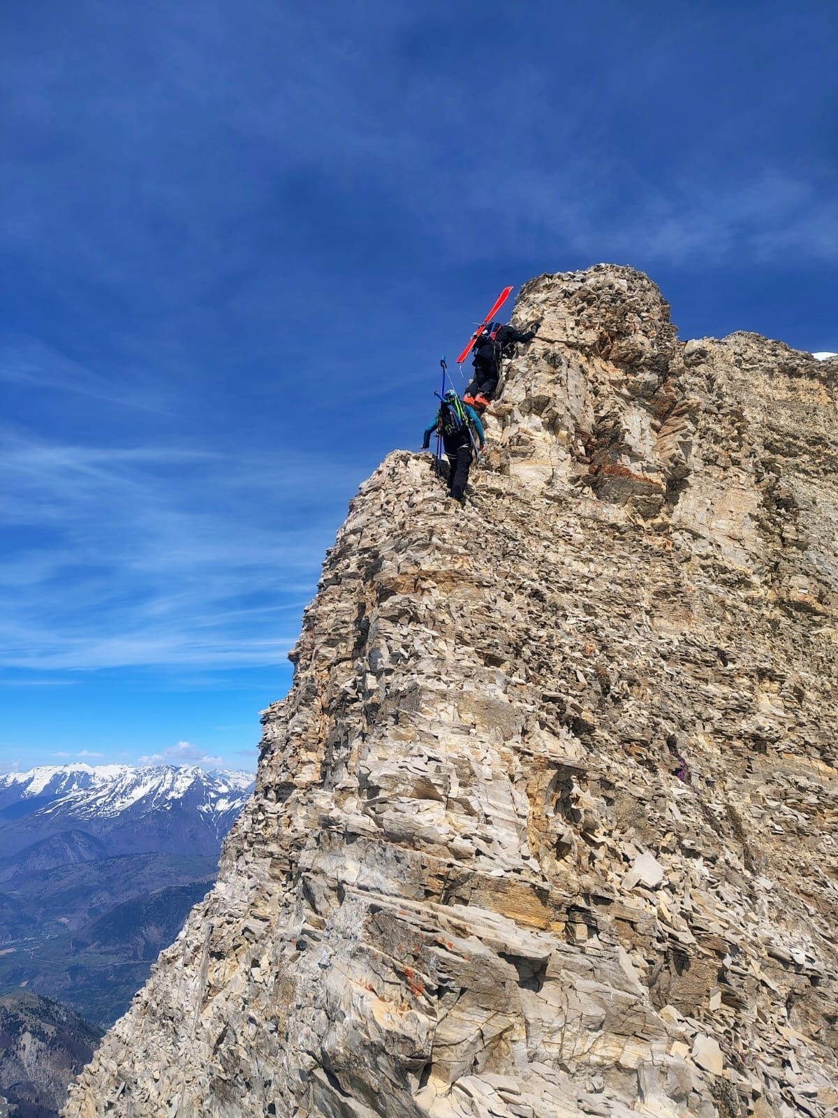 Bon y'a beaucoup moins de neige qu'en Belledonne (souvenir de la FN de la petite lance de Domène faite il y a 15 jours) et ce n'est pas la qualite de neige qu'on a eu depuis le début de saison, mais c'est quand meme la classe de skier depuis le sommet de l'Obiou avant de plonger dans la face nord ouest.