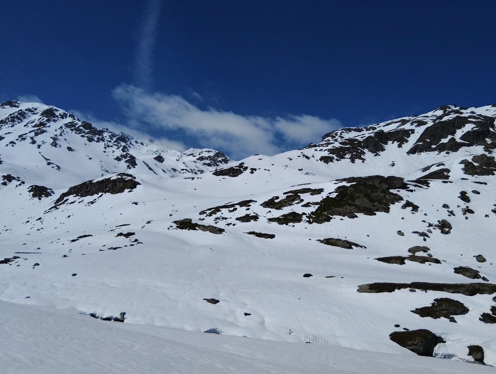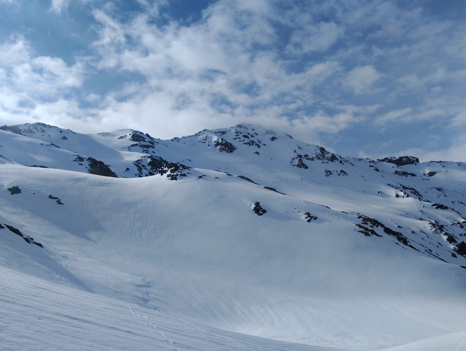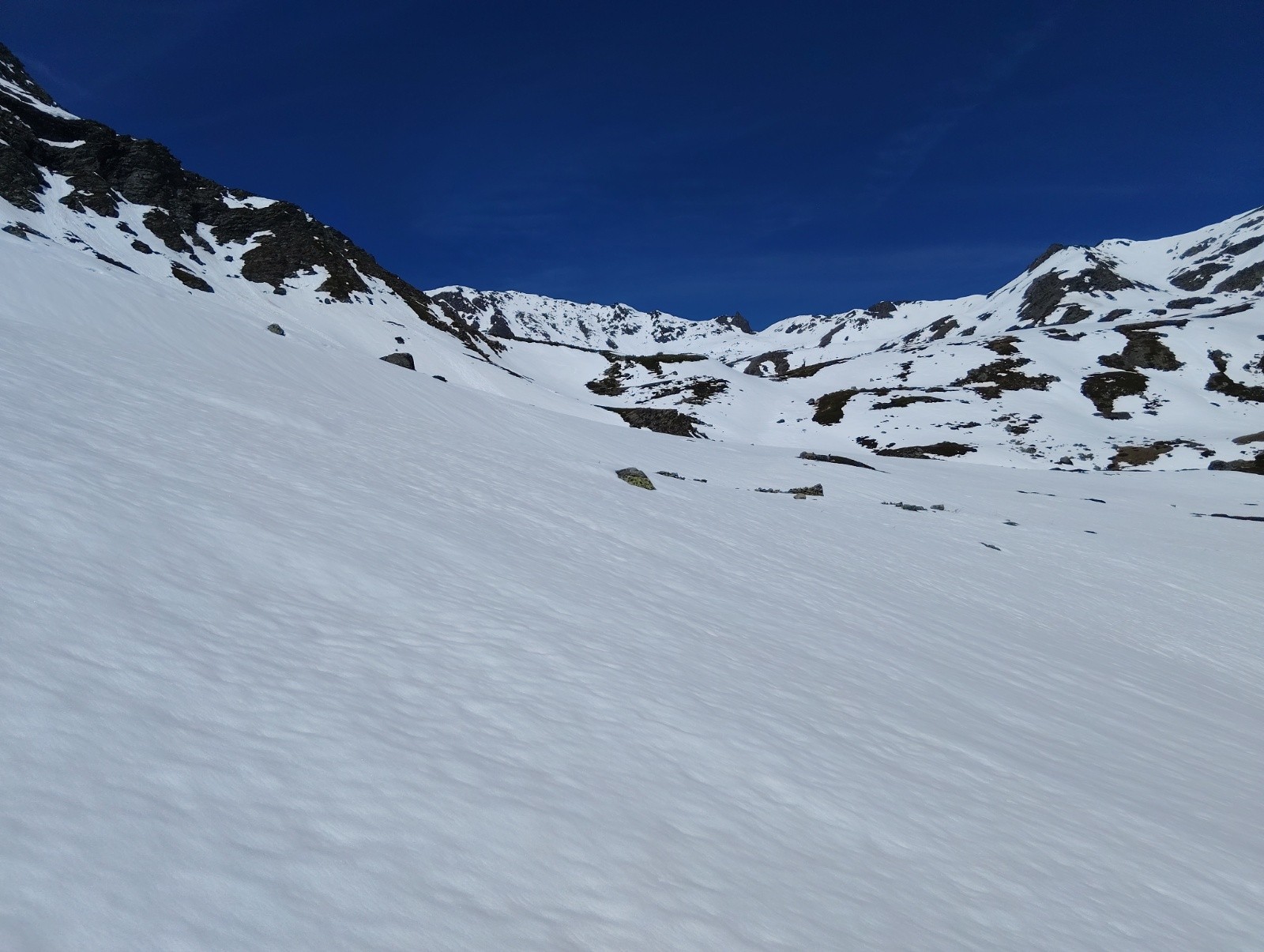 Conditions pour le ski : bon grip à la montée, confort avec les couteaux en pente raide, bonne moquette en E derrière roche noire.