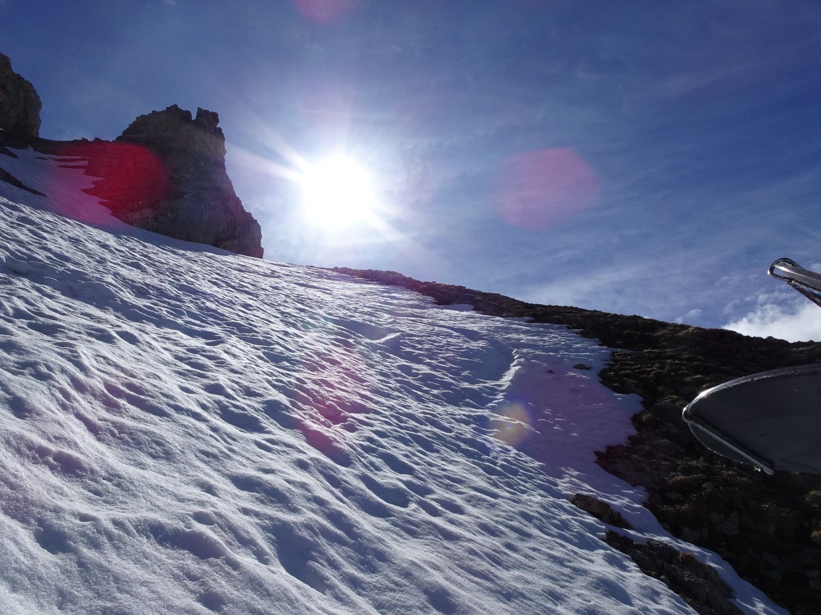 Conditions nivo et activité avalancheuse : pas de mouvement... La neige dans la combe du grand Crêt alterne entre dure et soupe, suivant les itinéraires.