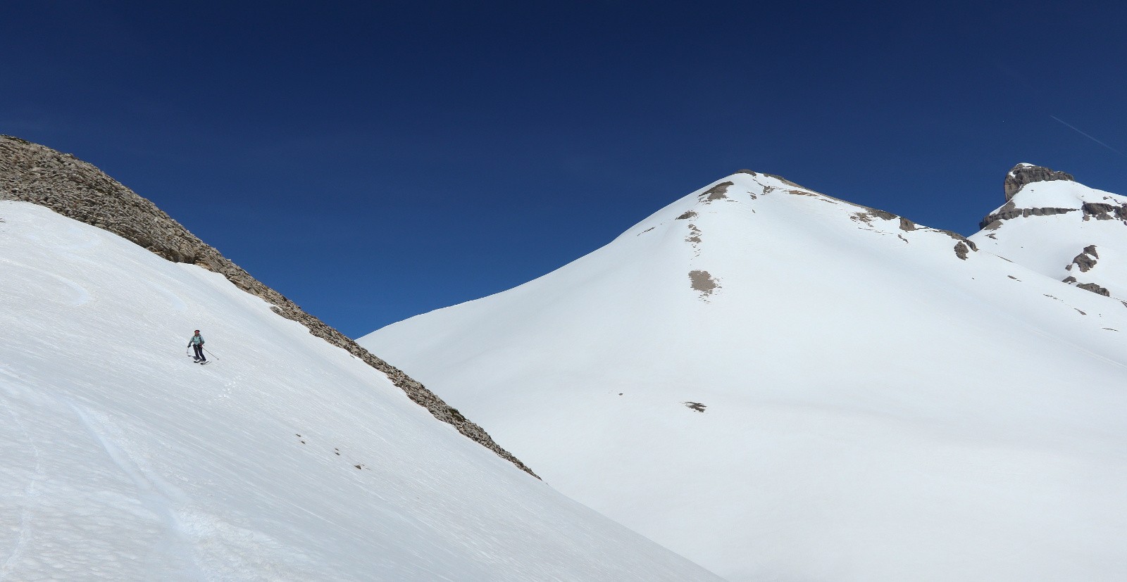 On a renoncé au sommet de Plate Longue pour privilégier la qualité de la neige (déjà bien revenue à 8h30) du versant SE de l’arête.