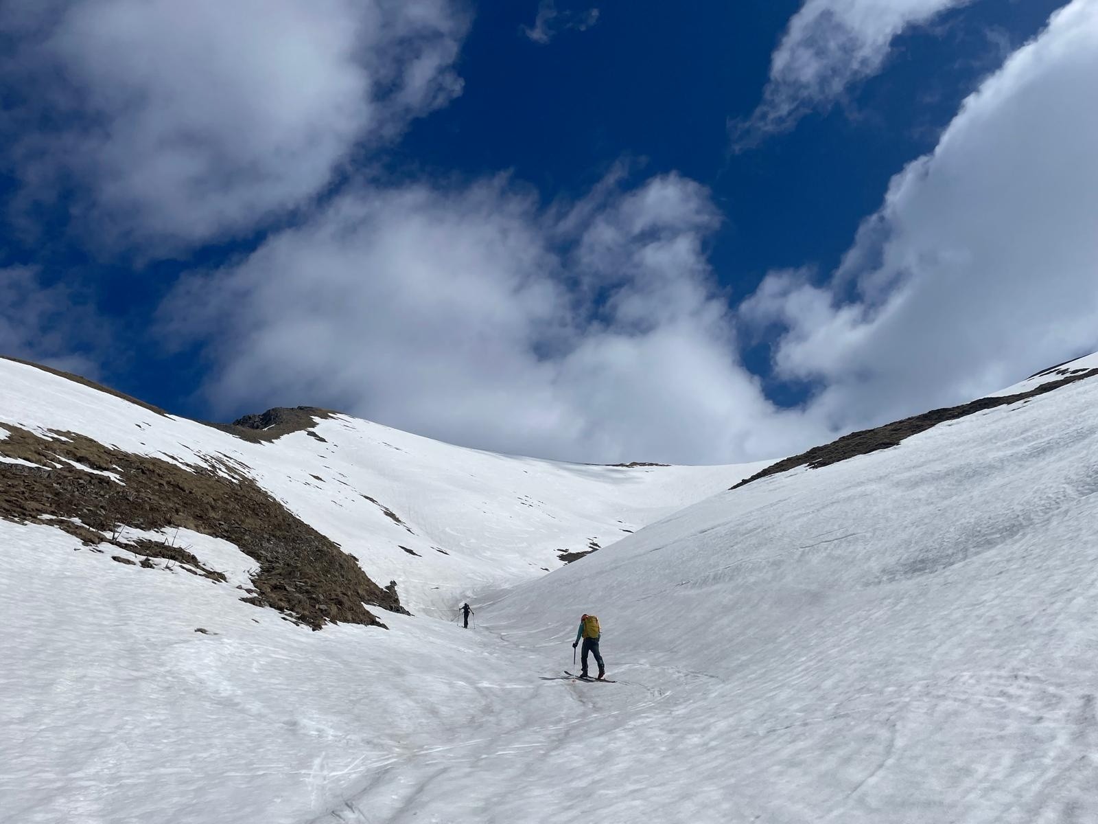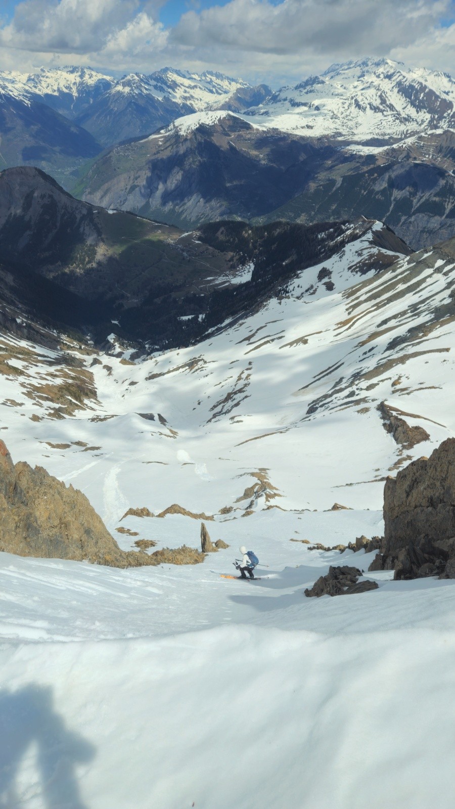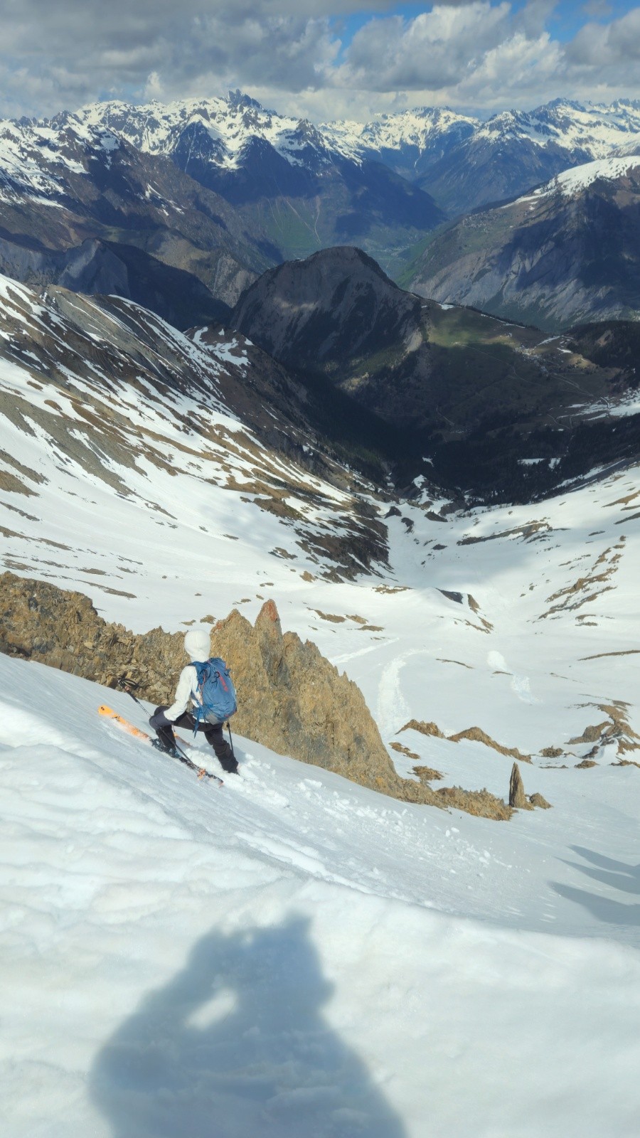 Ne reste plus qu'à se laisser glisser jusqu'au fond du vallon, dans une neige un peut molle mais pas trop, puis à refaire la longue traversée, pas si longue quand on sait à quoi s'attendre.