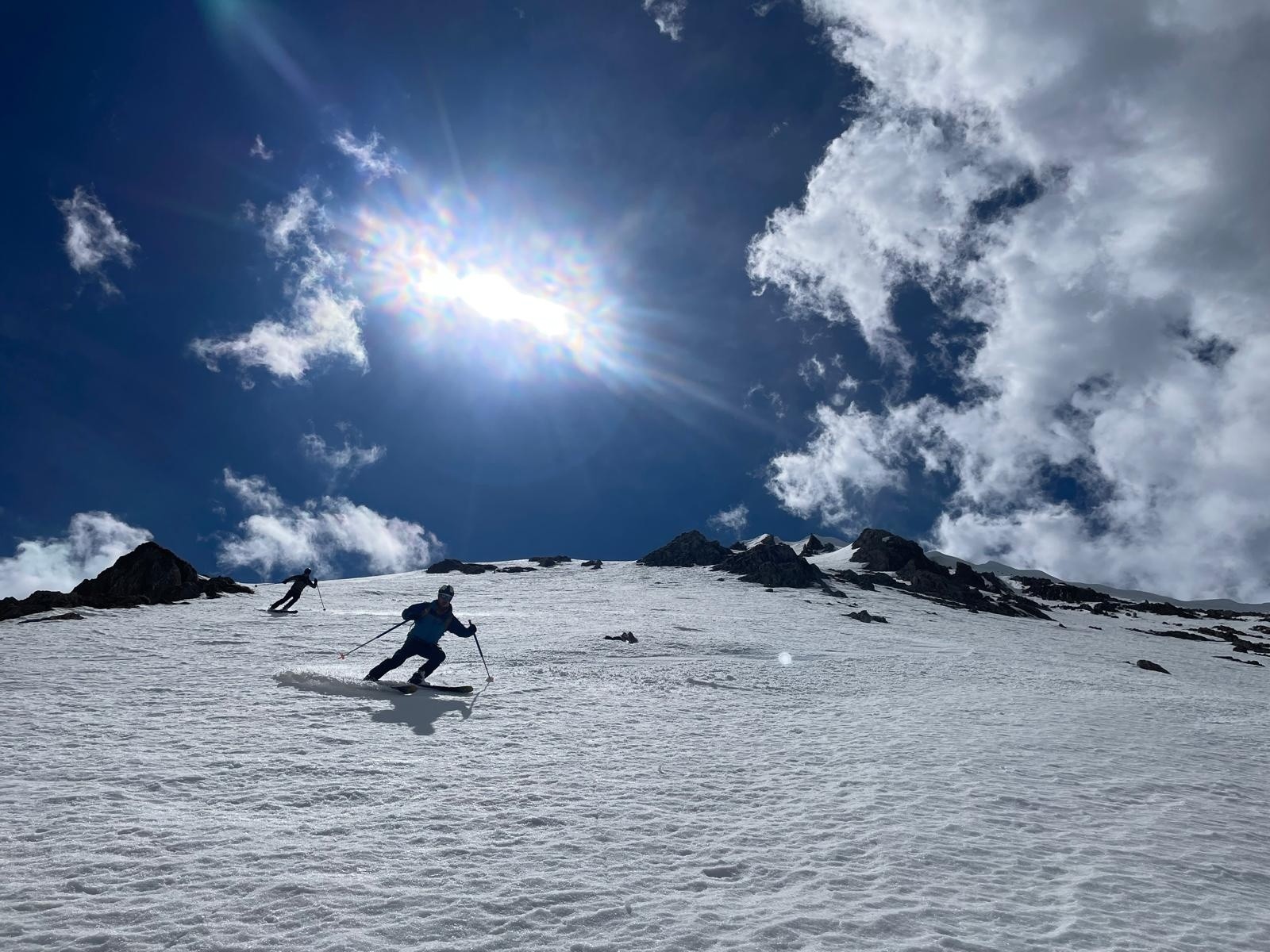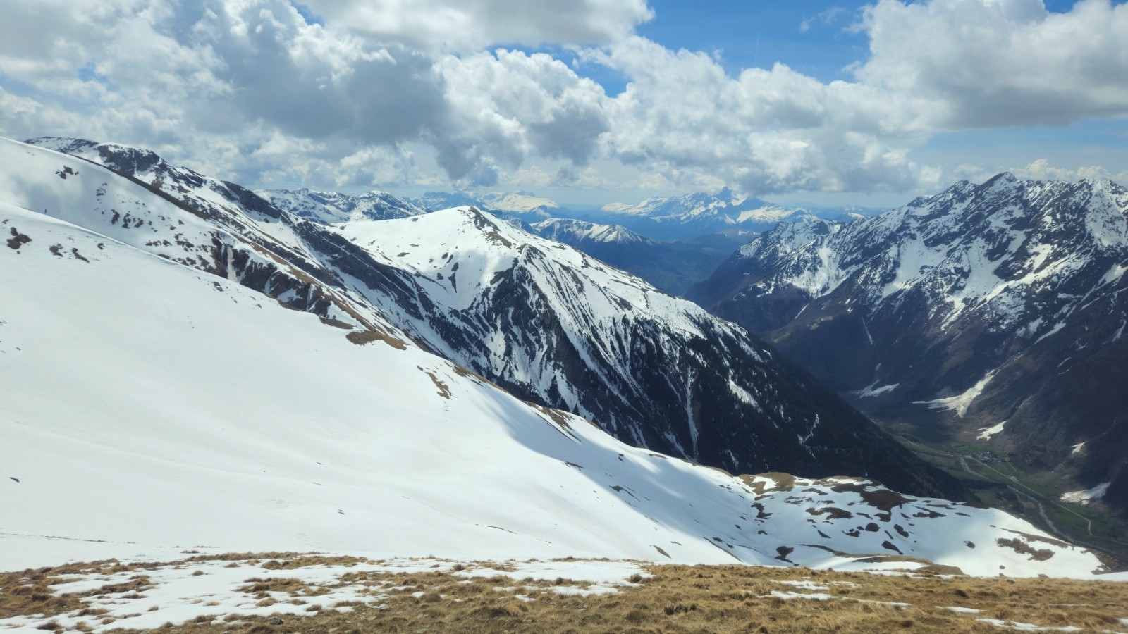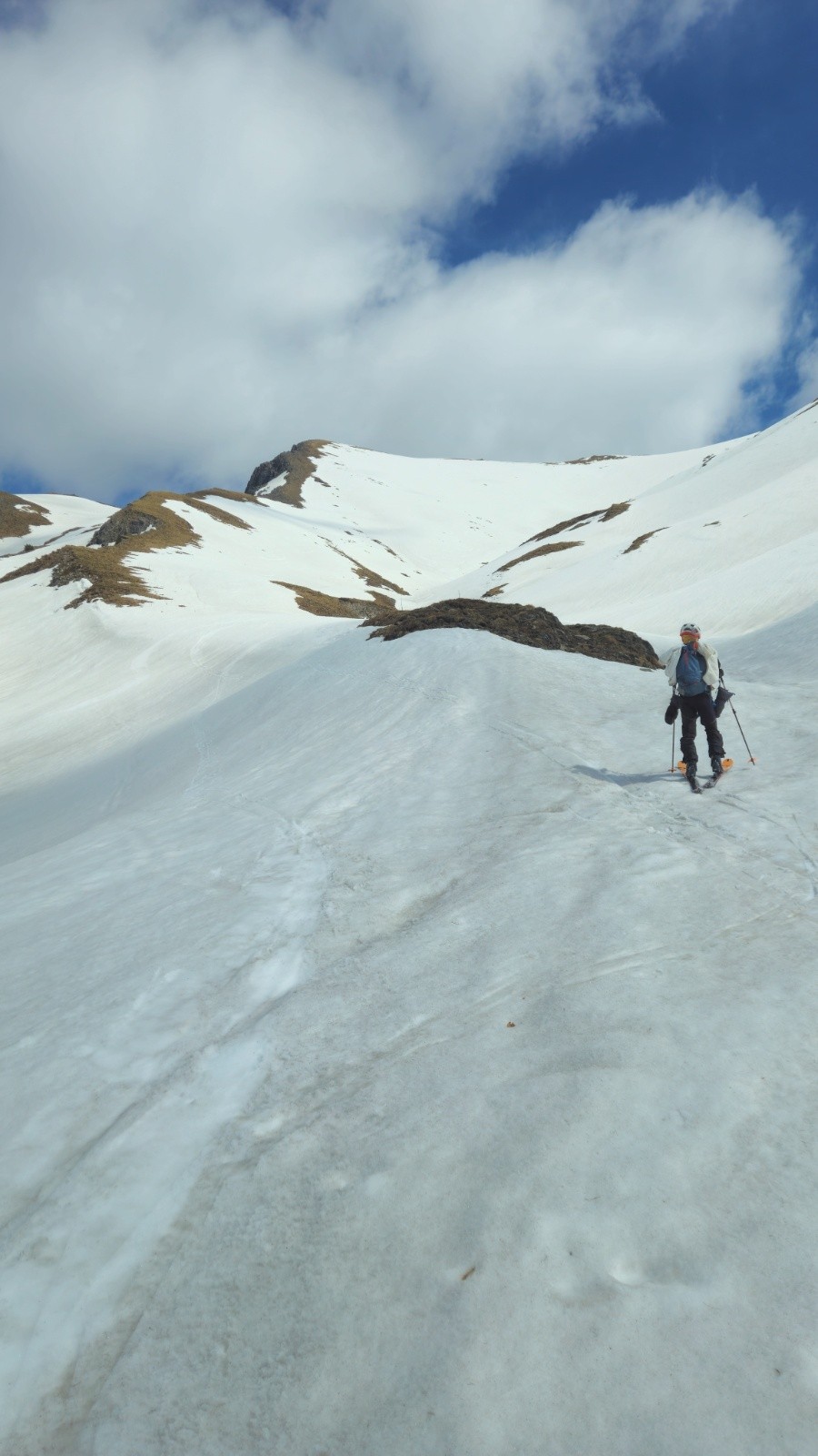Ne reste plus qu'à se laisser glisser jusqu'au fond du vallon, dans une neige un peut molle mais pas trop, puis à refaire la longue traversée, pas si longue quand on sait à quoi s'attendre.