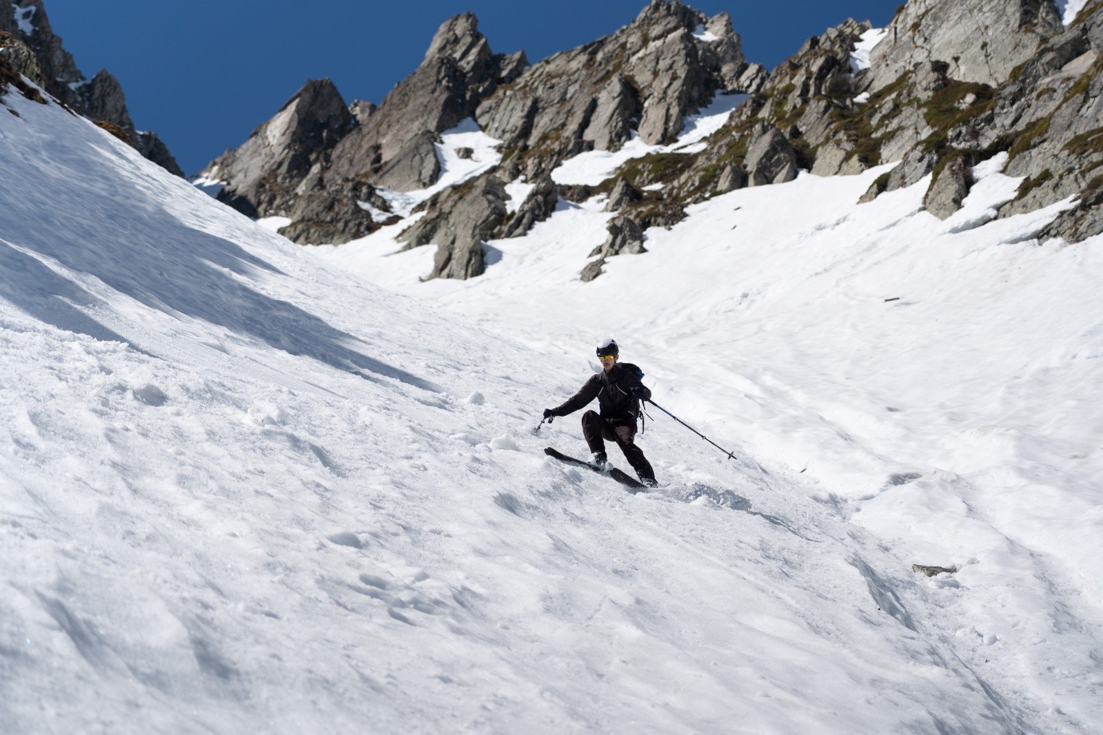 - Descente en neige d'abord dure (regel) puis de printemps dès qu'elle a pris le soleil