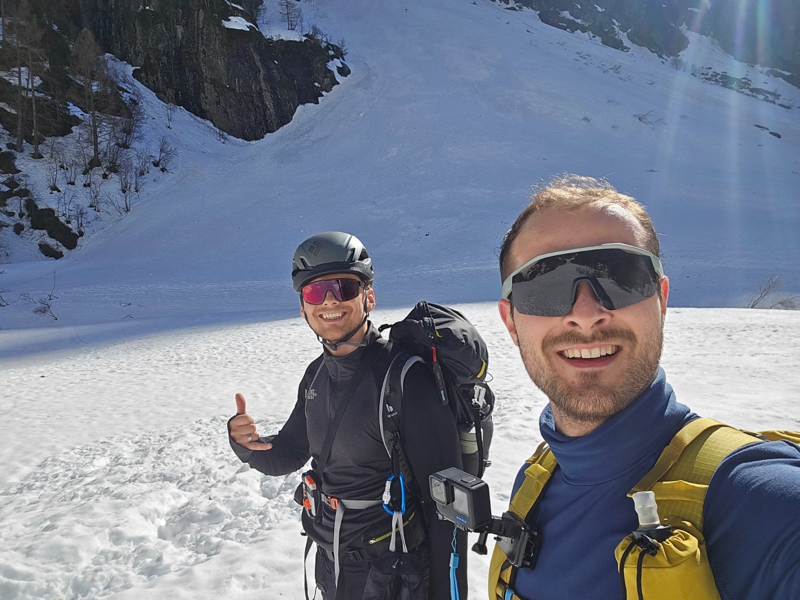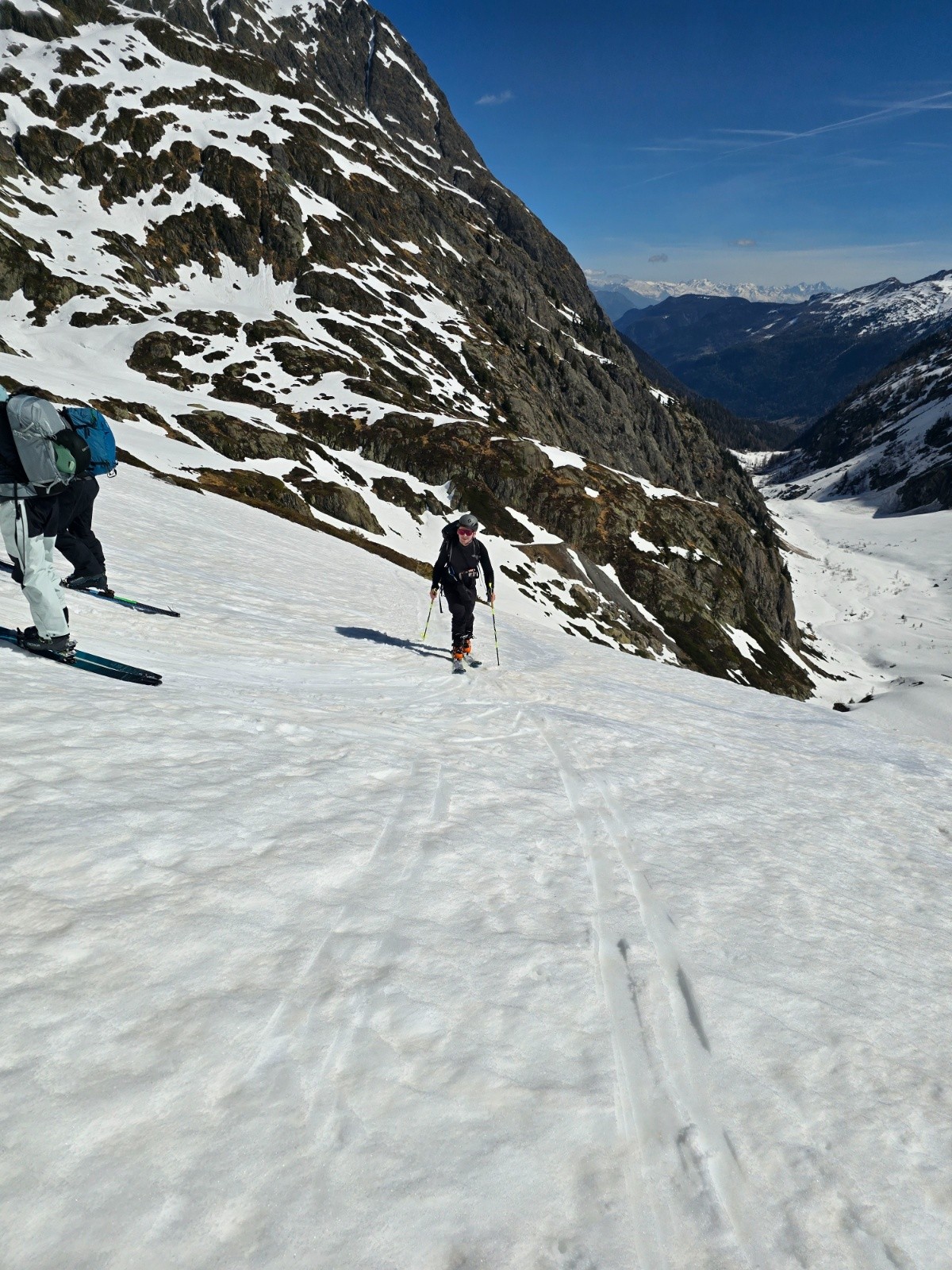 Pour la descente, on est les derniers de la journée, la skiabilité est encore bonne malgré une neige bien souple, parfois collante.