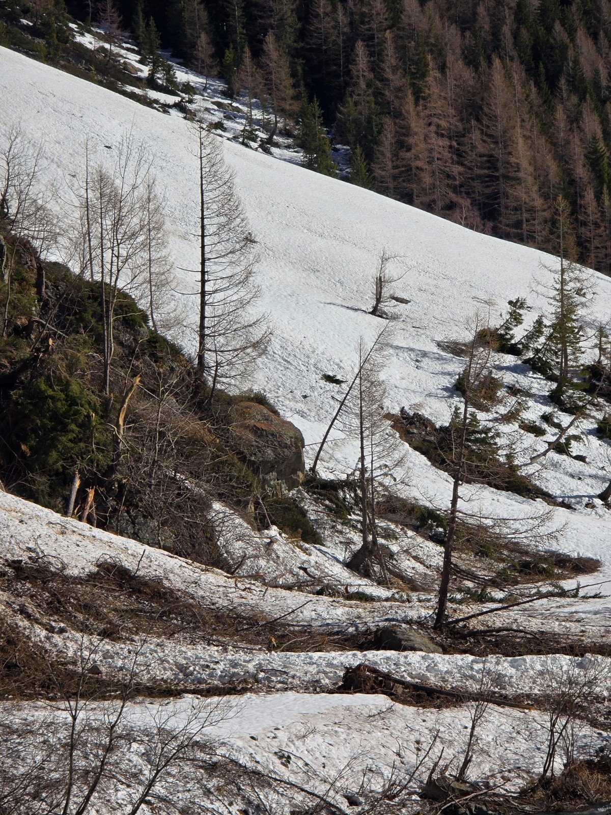 Une fois sortis de la forêt, c'est bien enneigé, malgré le regel et les zones d'ombre, ça passe bien sans couteau. Puis on a suivi l'itinéraire qu'on voit sur le GPX pour rejoindre le sommet.