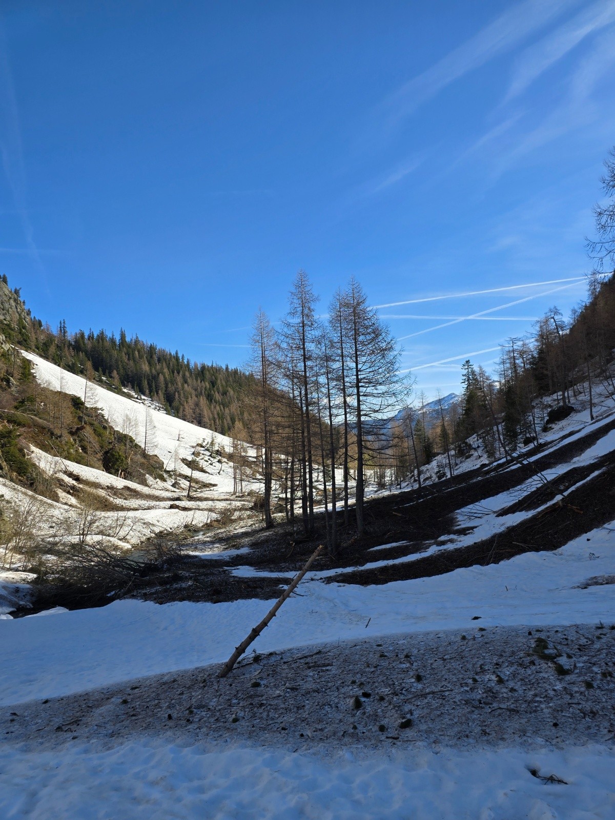 Partis du parking, on arrive à la station, on voit de la neige, on chausse direct ! On a du déchausser au bout de 100m, on était certainement un peu trop pressés. On rechausse au niveau de la grotte à Farinet, puis on re-déchausse une fois ou 2. A partir de 1500m, c'est bon on chausse pour de bon malgré quelques passages ou il y avait très peu de neige, on y va molo, sur les skis.