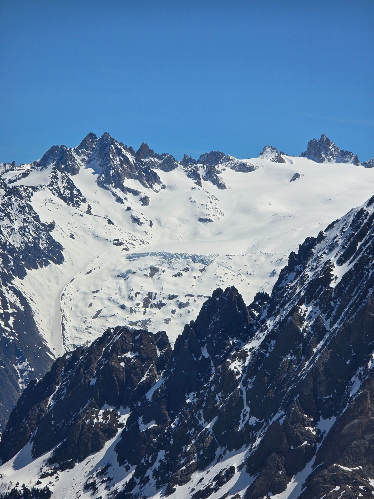 Météo/températures : Chaud, grand soleil, peu de vent Conditions d'accès/altitude du parking : Depuis Chamonix, route sans neige, garé au parking de la station/gare Altitude de chaussage/déchaussage : Chaussage possible dès 1500m moyennant quelques déchaussages dans la forêt Conditions pour le ski : Neige souple et collante entre le refuge et 2100m