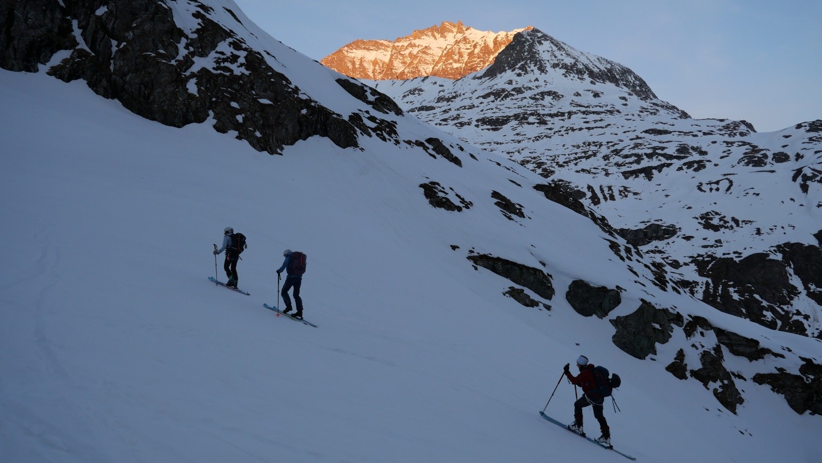 C'est pas tout ça mais on a des trains à prendre. Et pas n'importe quels trains : des trains corail ❤️ Nous interrompons donc notre grasse mat’ à 5h50, direction la France. Pour démarrer cette traversée, nous avons droit à un sublime lever de soleil qui nous accompagne lors de notre remontée de la vallée du plan Gias. Nous passons ensuite par le passage du Colerin, où le temps se gâte. Nous nous retrouvons dans une bonne purée de pois une fois passé côté français. Nous renonçons donc à basculer sur le glacier du Grand Fond et descendons directement sur le hameau d'Averole. La visibilité s'améliore plus bas, ce qui nous permet de profiter d'une bonne moquette jusqu'en bas. Après une pause picnic, il ne reste plus que le long plat descendant pour rejoindre notre fidèle mélèze. La météo s'améliore ensuite, ce qui nous permet de profiter de la belle descente jusqu'à Modane. Nous ne sommes alors à nouveau plus maître de notre destin, que nous remettons entre les mains de la sncf : la nouvelle épreuve olympique s'est bien passée. Nous pouvons donc regagner nos pénates, fatigués mais heureux !