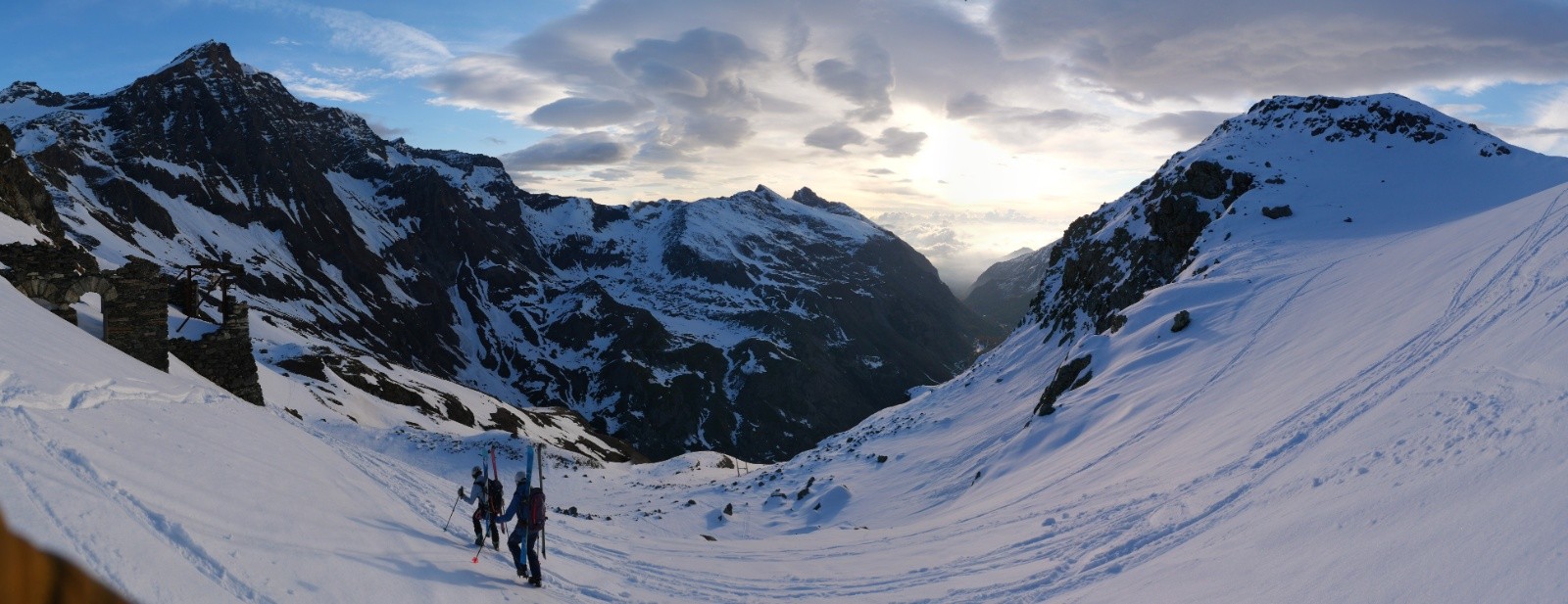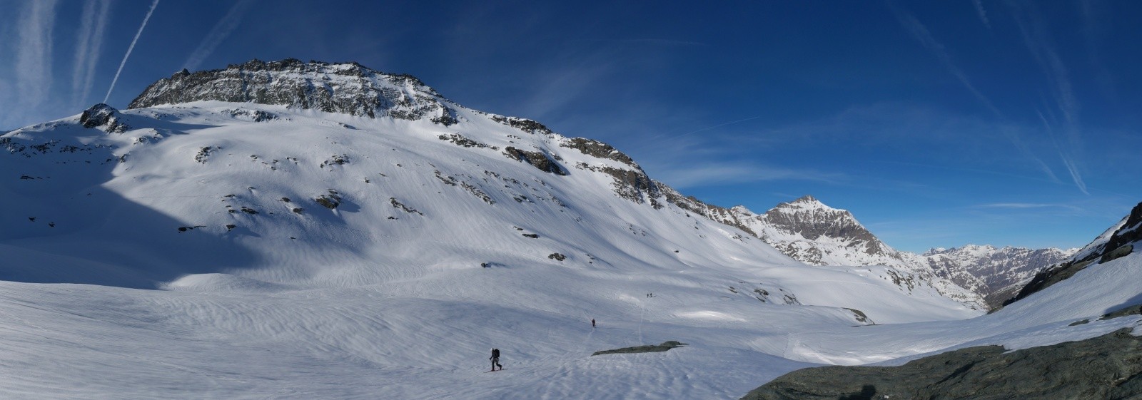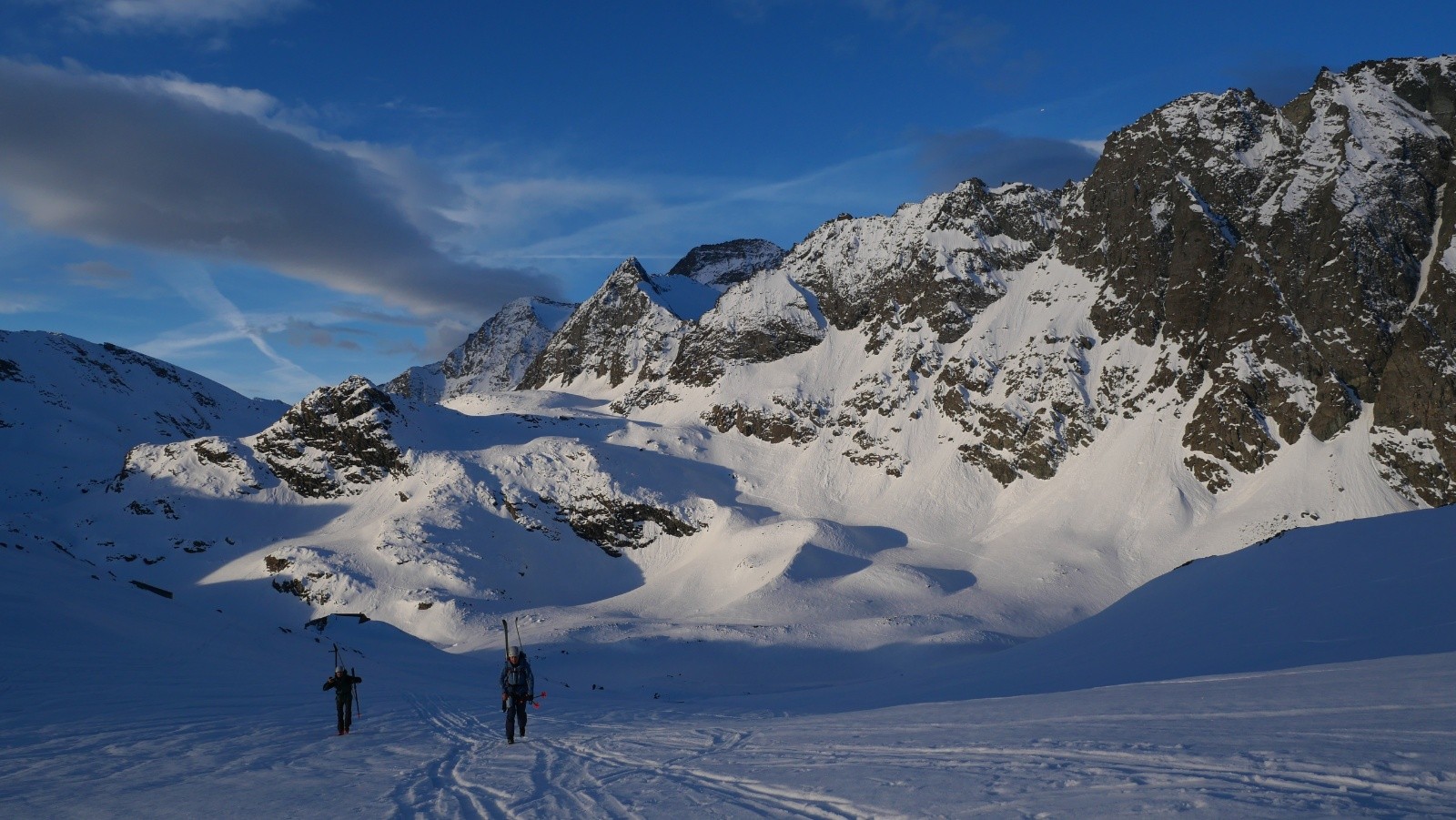 Nous rejoignons ensuite le col d'Arnès qui est bien sec. Le secteur manque de neige cette année. Nous passons en Italie où nous pouvons admirer l'autre face de la Bessanèse , aussi imposante que la face Française. Nous arrivons finalement au refuge Gastaldi, où les toilettes sont hors service. S'ensuivent un certain nombre d'aventures plus ou moins épiques probablement pas compatibles avec les règles de modération de skitour.