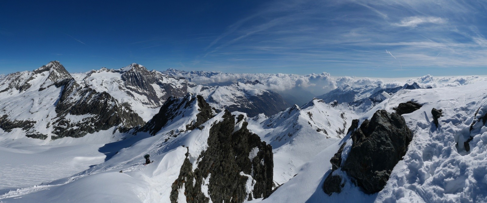 Conditions pour le ski : le secteur manque de neige, mais globalement manteau printanier. Croute en nord entre 2800 et 3200, poudre au dessus.