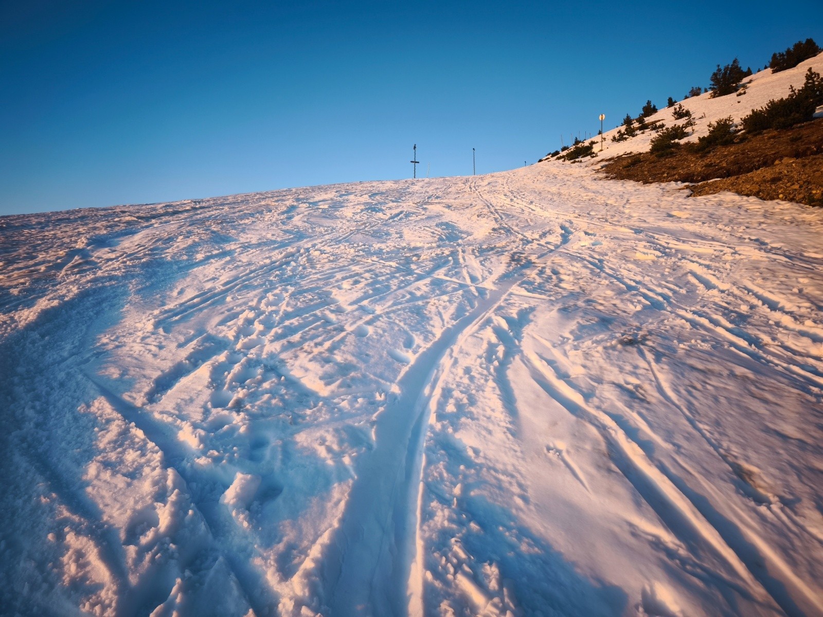Les skis passeront à la brosse après fart, je pense que çà sera plus efficace avant la prochaine sortie, même si la seconde descente sur regel à nettoyer déjà un peu cette glue.