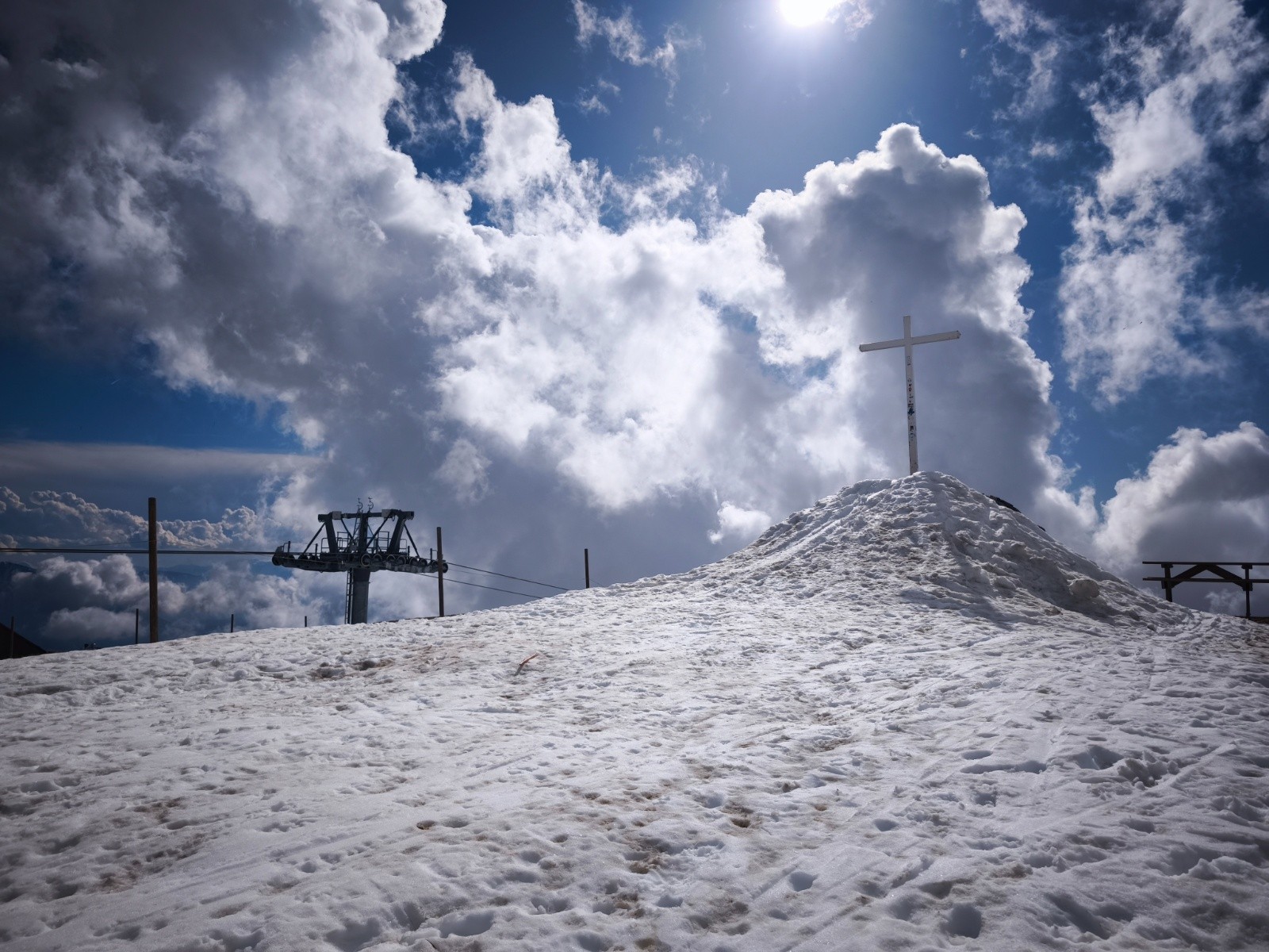 Grosse pause pour tenter de faire sécher les peaux, mais la croix resta dans le brouillard pendant bien plus de temps que prévoyait météo&radar.