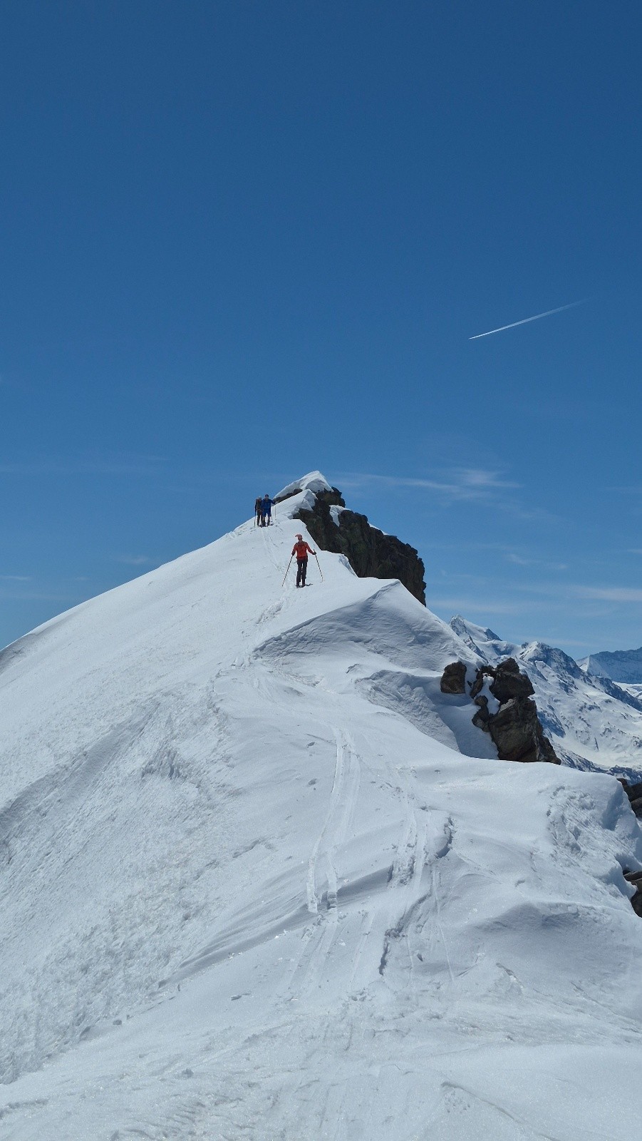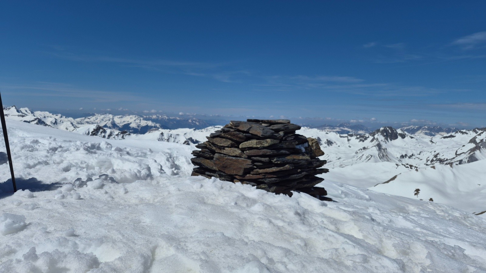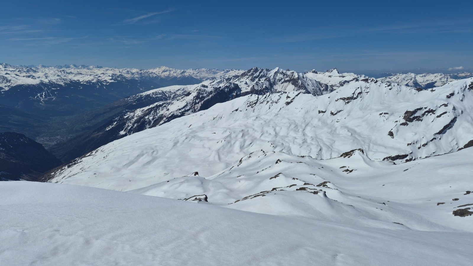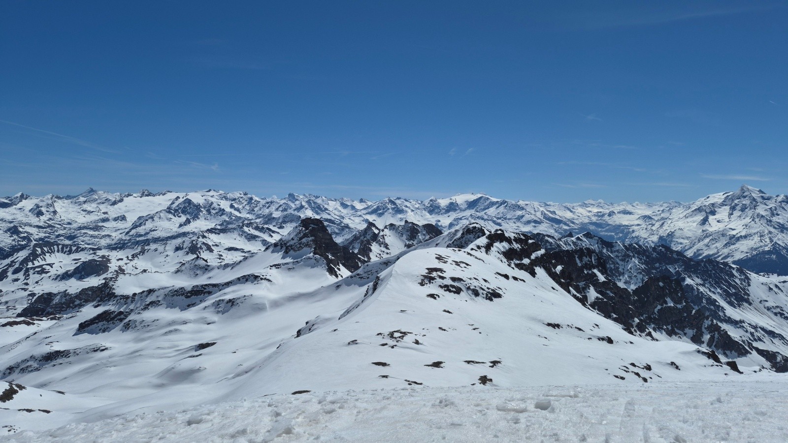 Itinéraire suivi : Depuis la voiture montée en suivant le chemin d'été, on a pu voir 3 bandes de Chamois qui descendaient dans le vallon. Nous avons suivi une trace dominant le torrent du Versoyen puis avons atteint le replat vers alt. 2050 m et le pont de Chézari sur le Versoyen. Ensuite nous avons choisi de remontée par le vallon du Lac des Rousses jusqu'au Col des Rousses (2851m). Nous avons ensuite basculé côté Italien (petite descente), et en traversée ascendante vers le N-NW, atteindre le col des Veis, puis le sommet. Descente par le vallon du Méchandeur pour rejoindre le pont de Chézari et remonter jusqu'à 2150m avant la descente finale en passant par les chalets de "Veis de Nastase".