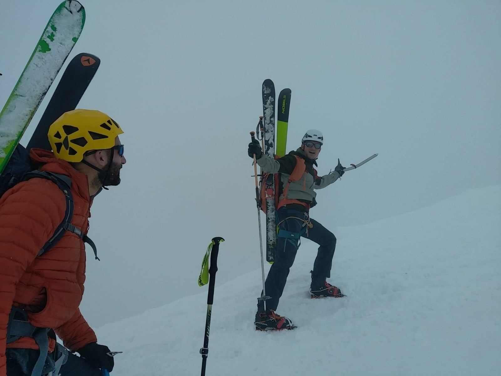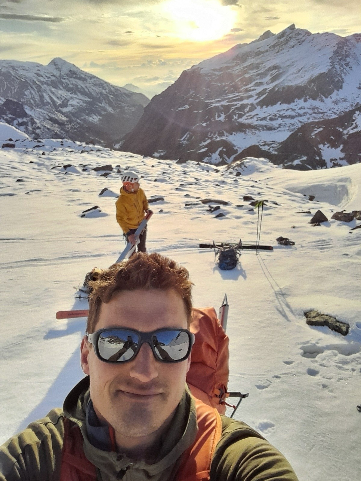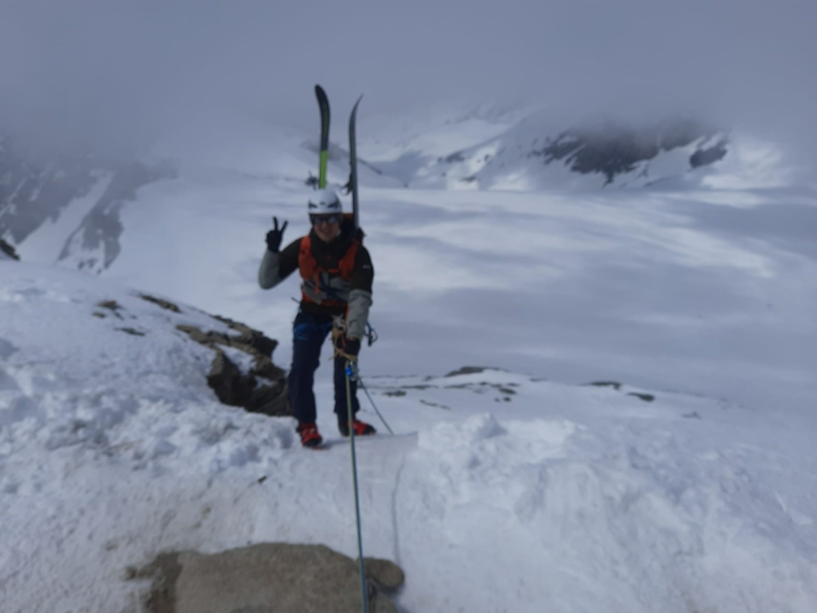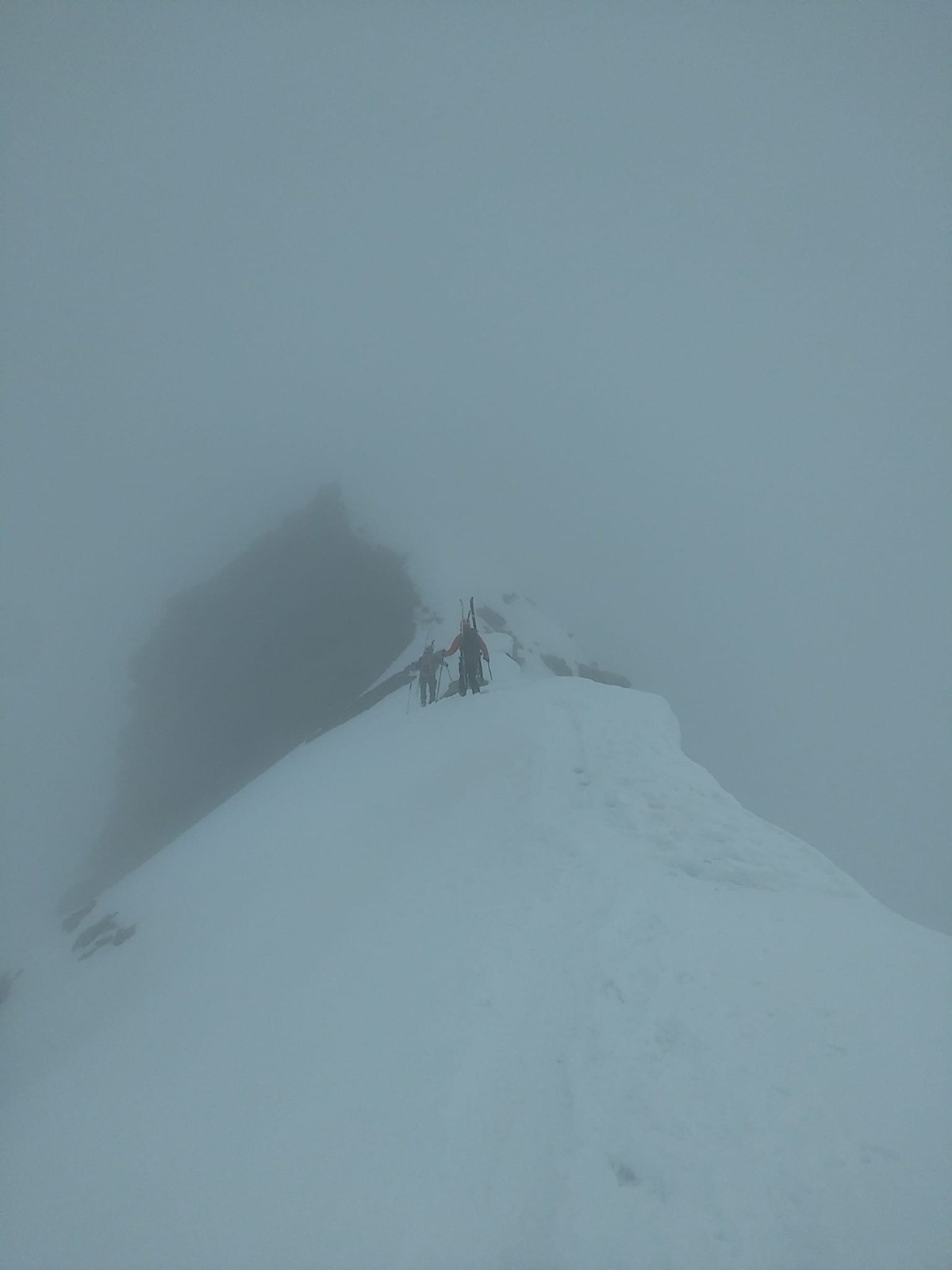 Conditions nivo et activité avalancheuse : Conditions bien printanières, avec un regel nocturne limité (oubli des couteaux finalement sans conséquence), anciennes coulées de purge tout au long de l'itinéraire