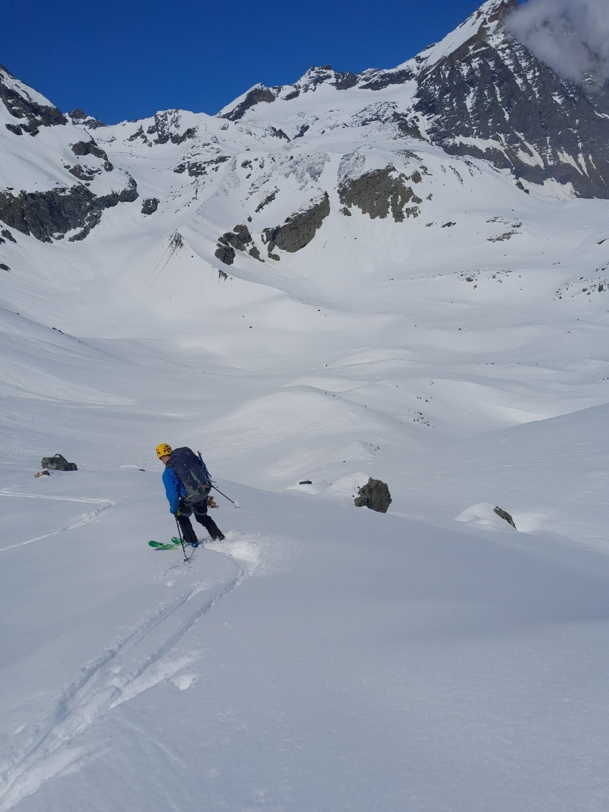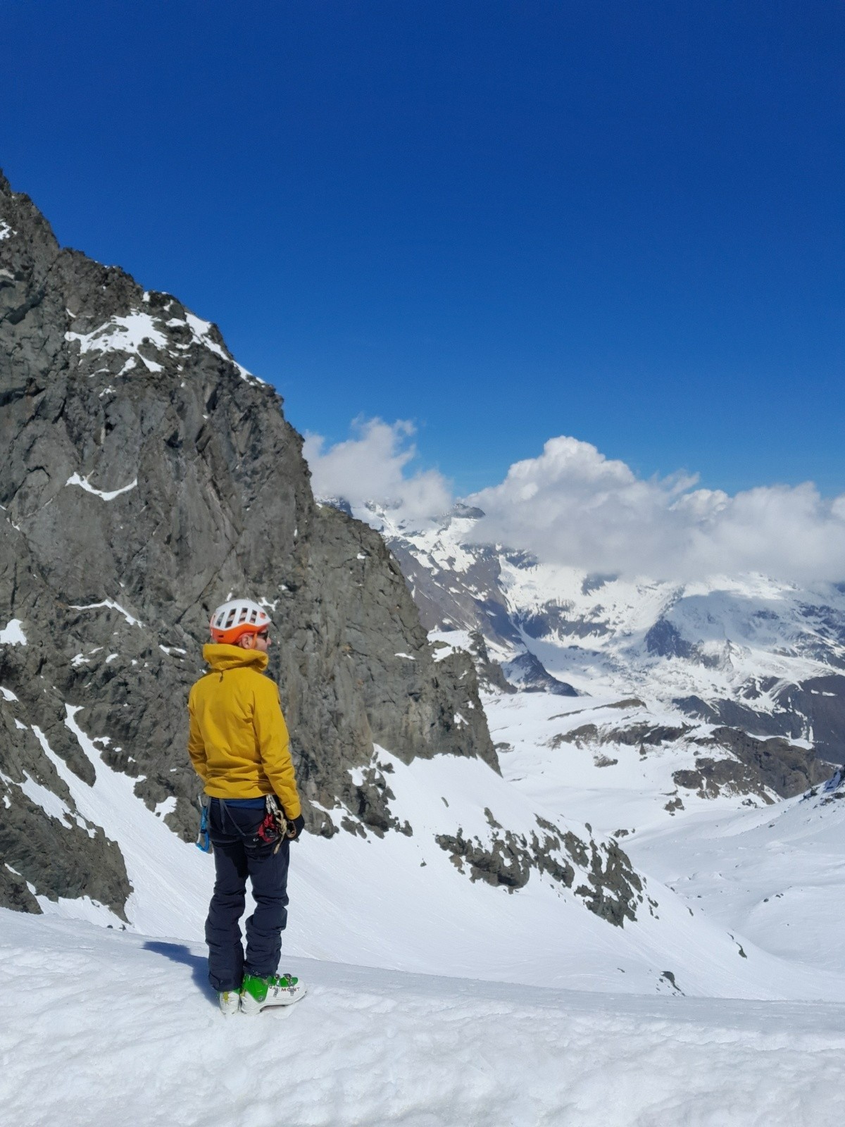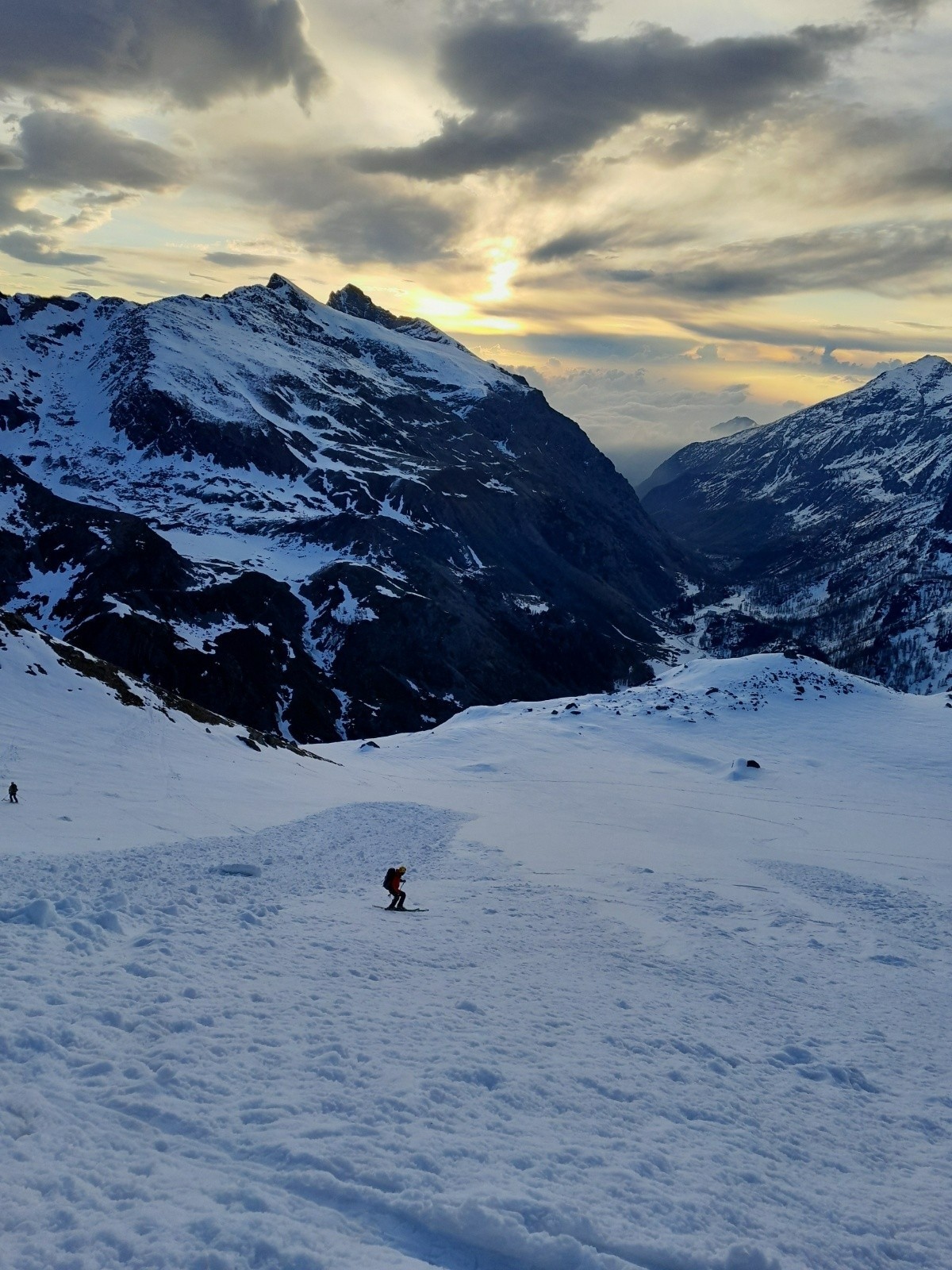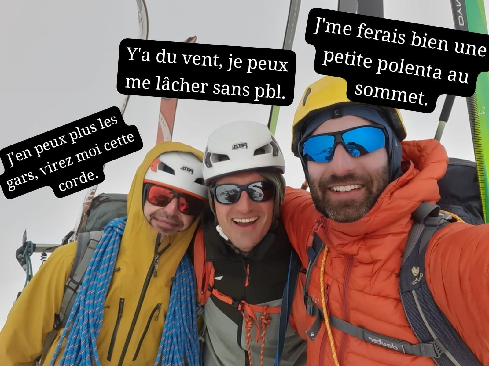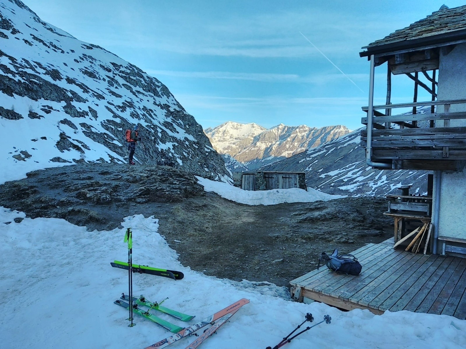Itinéraire suivi : montée tardive au refuge d'Averole, pointe Marie et col d'Arnes le premier jour et redescente sur Gastaldi, Selle de l'Albaron, arête jusqu'au sommet, rappel pour descente par le Grand Fond