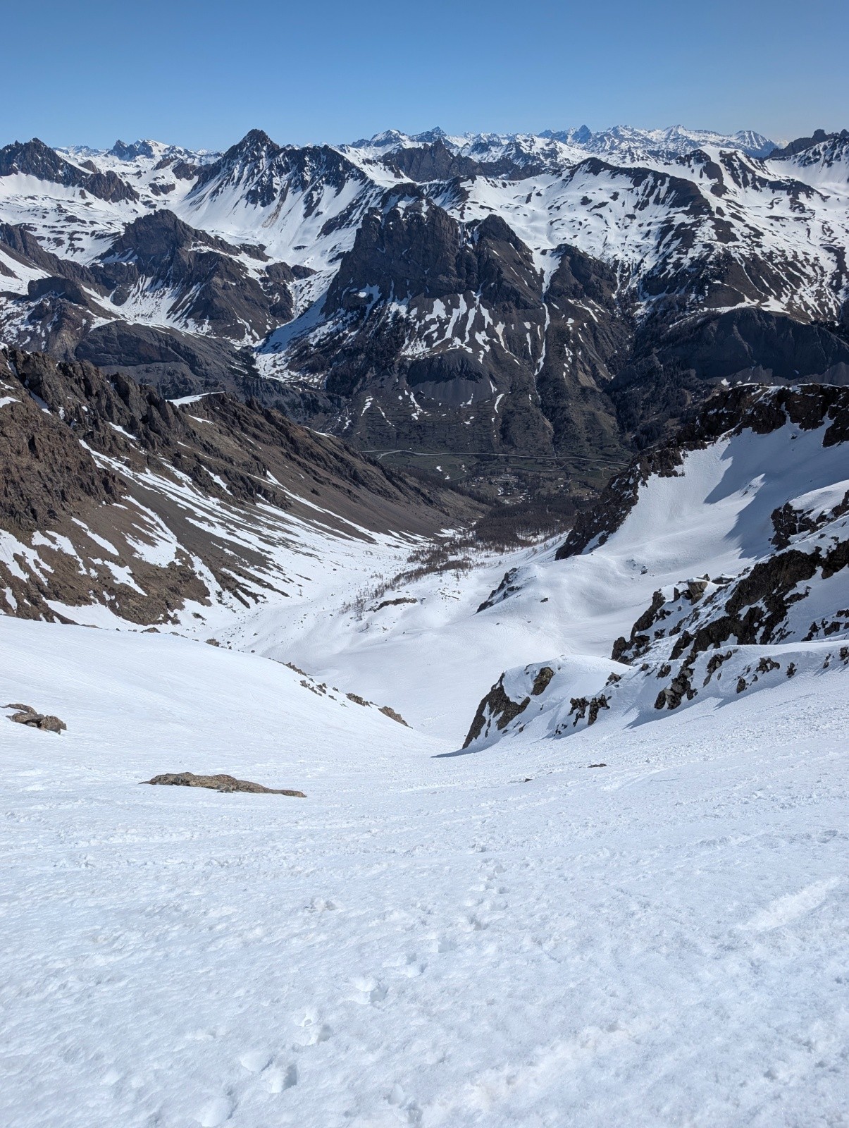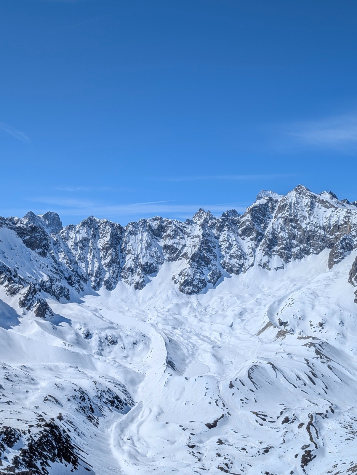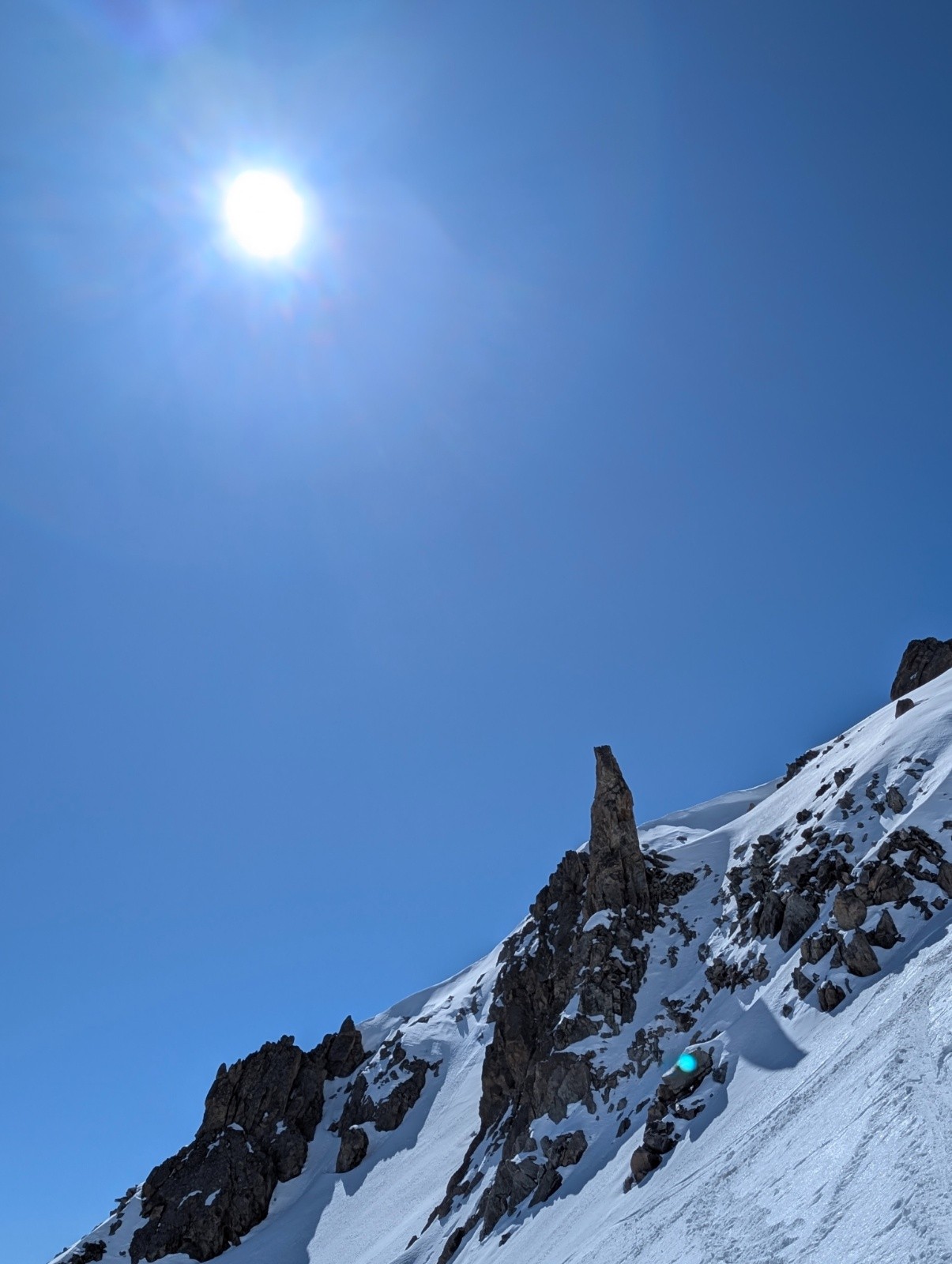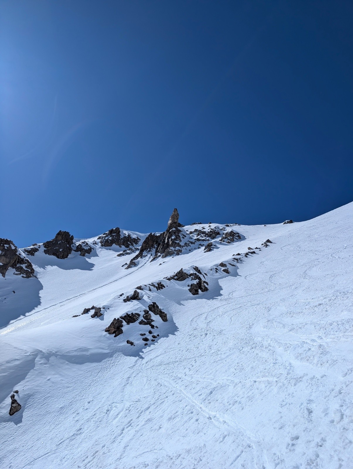 Conditions pour le ski : neige de printemps au top,un petit regel ,a l'ombre mais au soleil ça se transforme déjà à 9 , au pied de la face j'ai préféré mettre les couteaux car parfois ça glissé avec la neige humide .