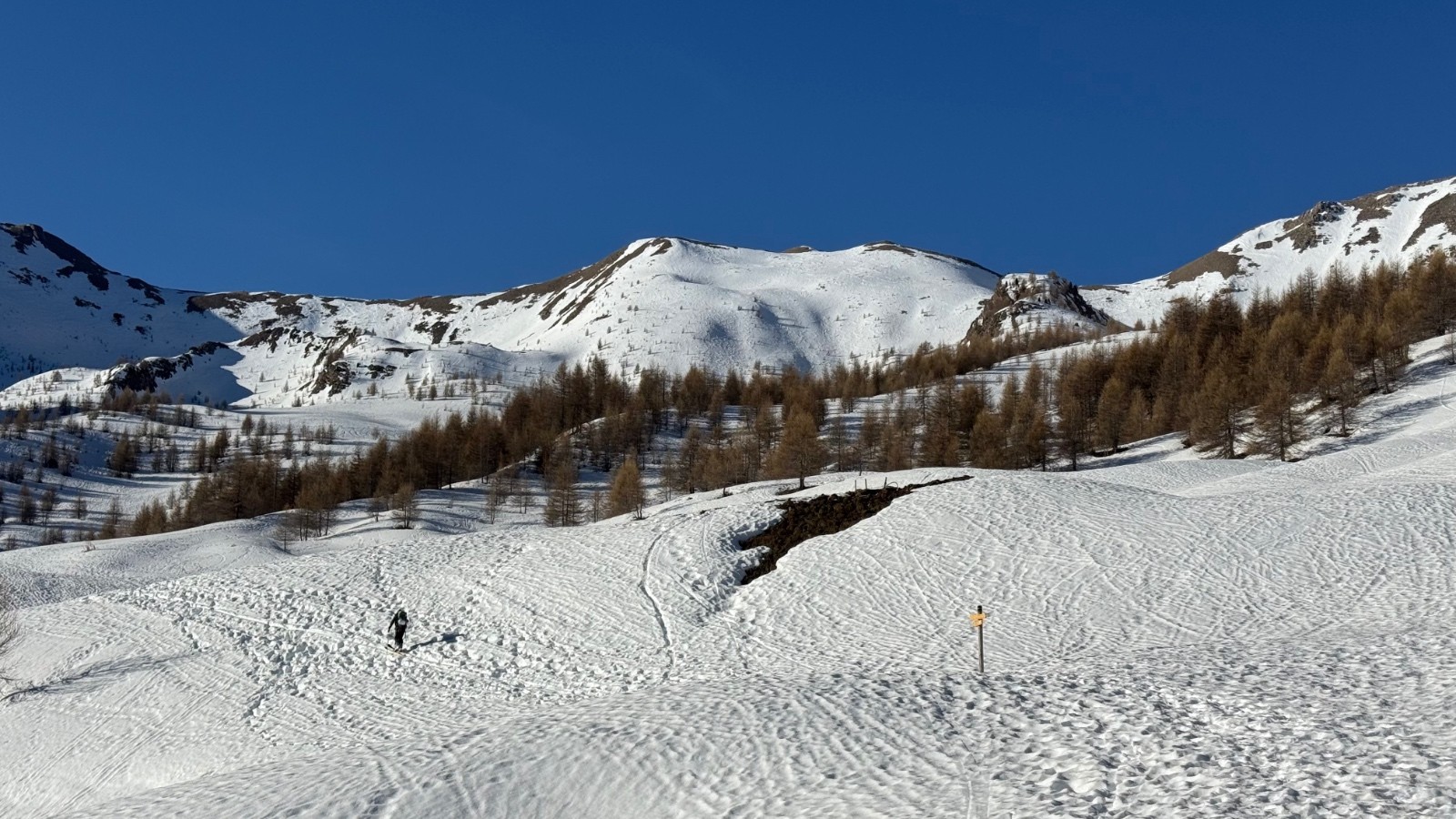 Conditions nivo et activité avalancheuse : une grosse avalanche sous le pt 2759, en NE, partie au sol. Pas bien vieille à mon avis. Impressionnante ! D’autres coulées plus anciennes et plus petites
