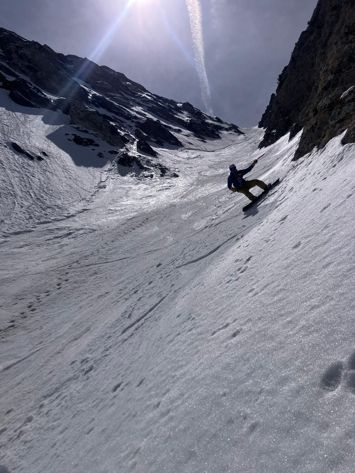 Conditions pour le ski : superbes conditions de printemps dans le vallon de Nalbert et dans le couloir une fois décaillé