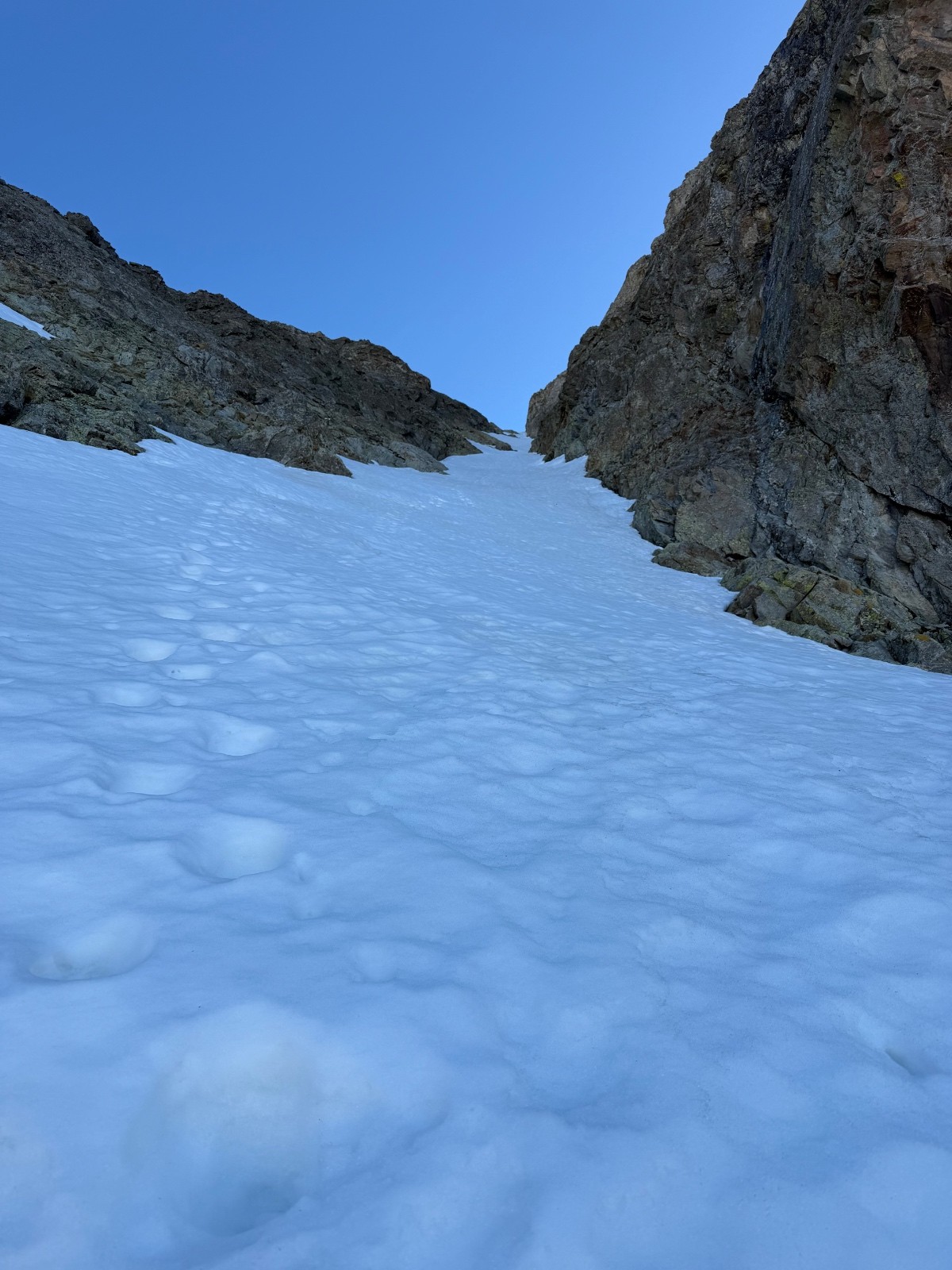 Sommet : 10h30 en prenant son temps espérant un léger décaillage qui n'est pas venu, le couloir prend le soleil vers 11h en ce moment