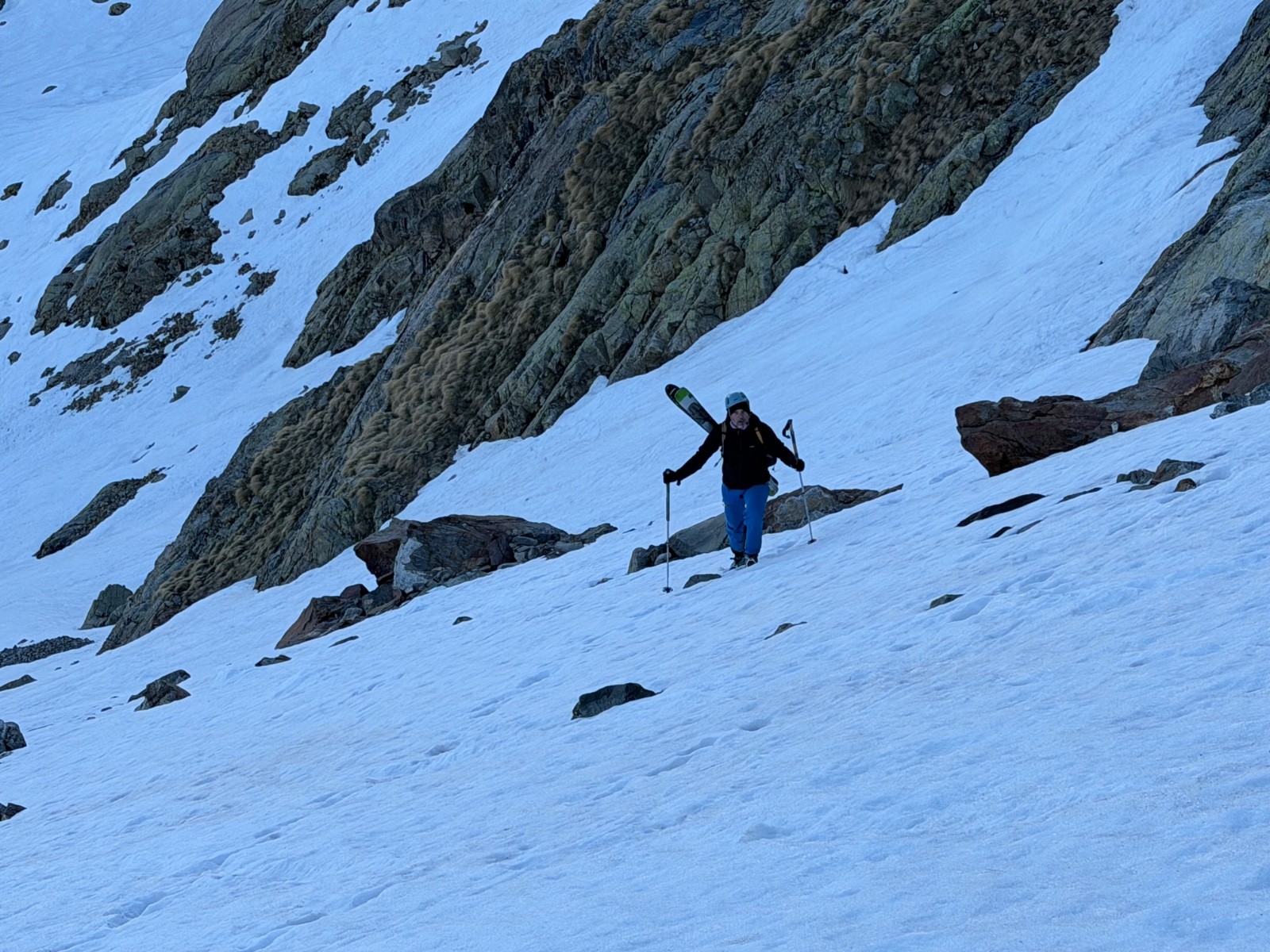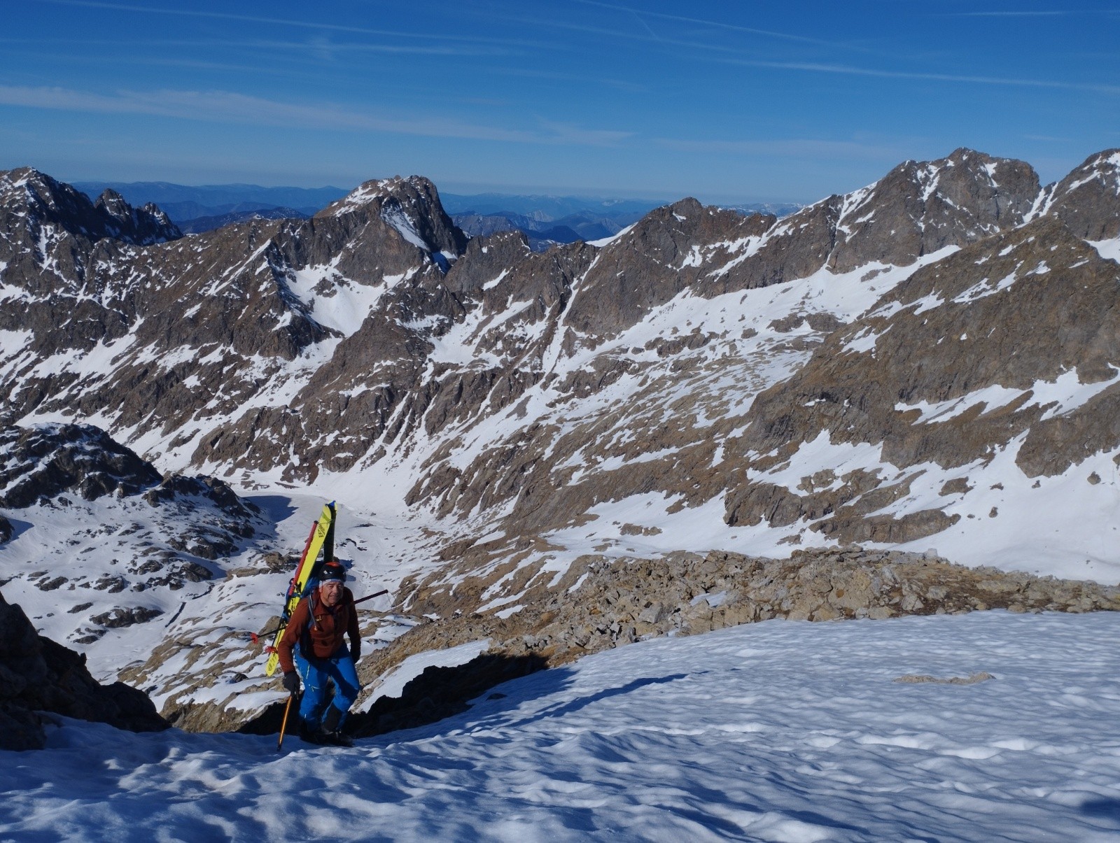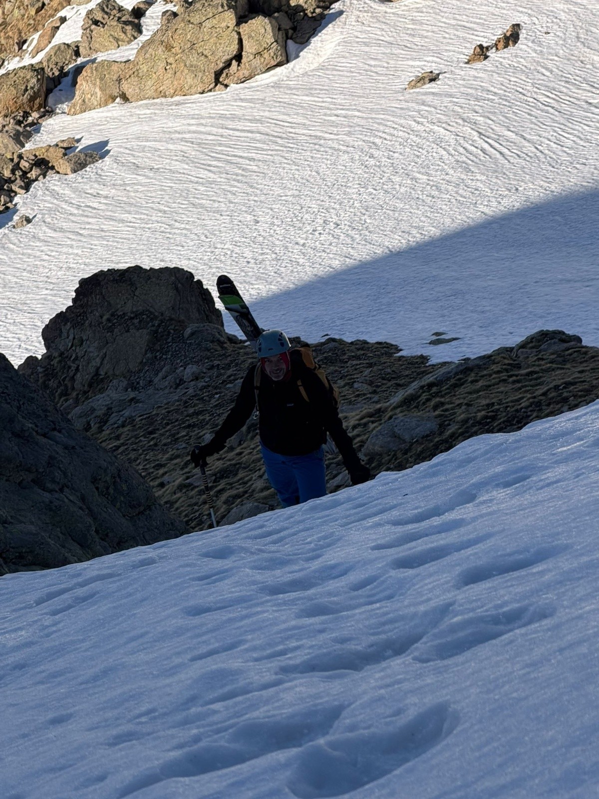Neige très dure dans le Couloir Ascquaciatti, ensuite montée en crampons ou couteaux c'est selon.
