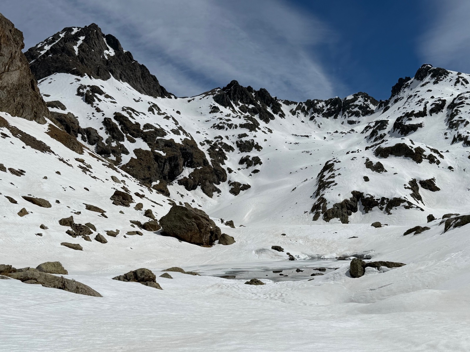 descente sur le lac Autier en neige de printemps voire d'été (limite névé)