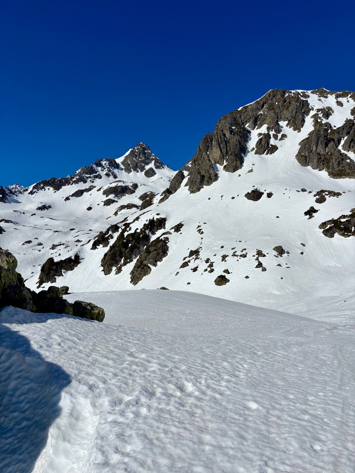 Neige de Neve bosselée, vite mou au soleil couloir qui s éclaire à 13 h etroiture encore bien dure est faiblement enneigée peut s éviter apr un crochet rive gauche