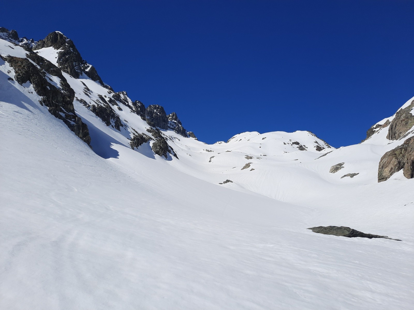 J'avais hâte de reprendre une petite rando en solo, dans un secteur où il m'a fallu regarder par dessus la Brèche pour apercevoir les deux seuls skieurs de la journée descendre du Rocher Blanc.