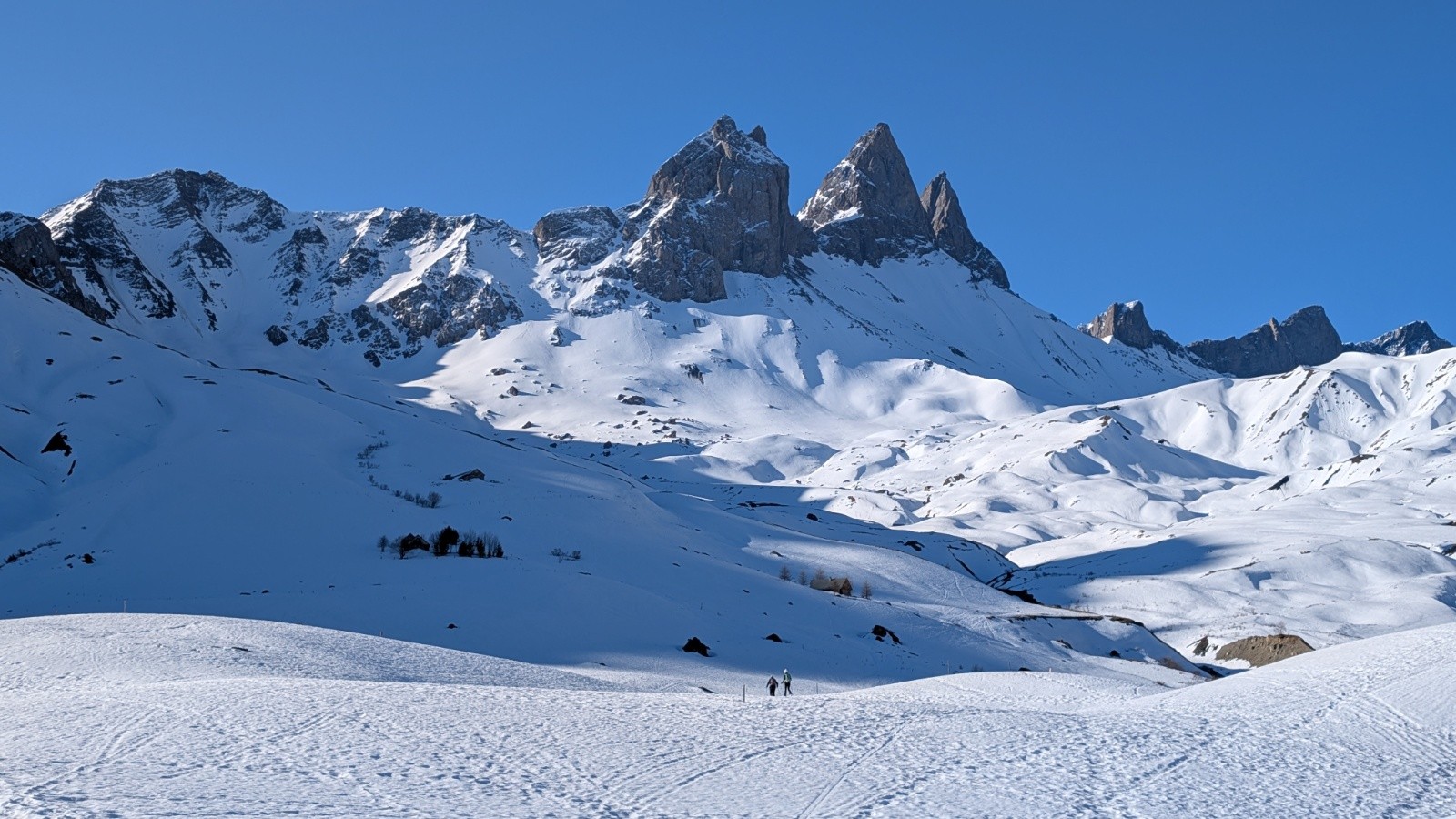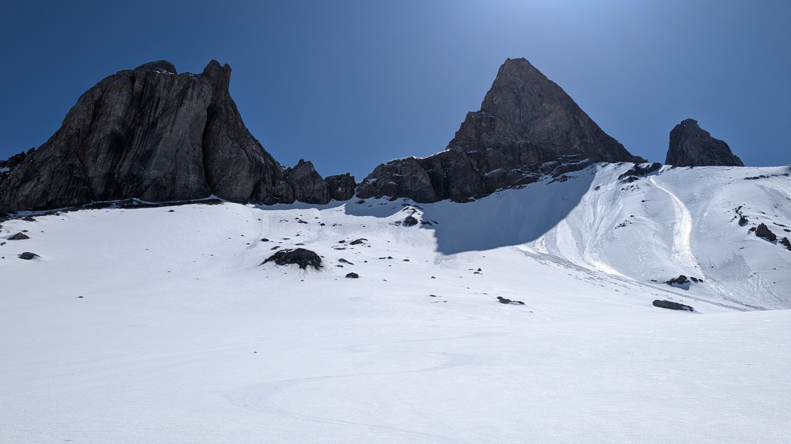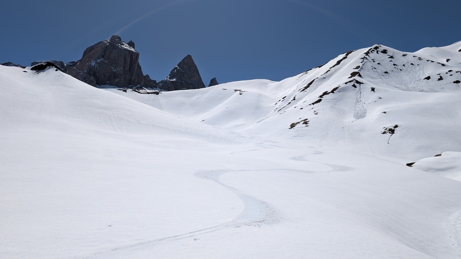 Sortie dans d’excellentes conditions grâce au bon regel nocturne. La paysage est sublime tout du long. Vu 4 humains sur l’ensemble de la sortie. Deux d’entre eux semblaient enchaîner le tour des Aiguilles en direction du col de l’Epaisseur. Arrêt vers 2900 m dans les pentes inclinées sous le col des Aiguilles. Quelle ambiance sous ces monstres. Descente en neige dure qui va s’adoucir progressivement, on peut envoyer du bois c’est top. À partir de la Basse on trouve de l’excellente moquette qui donne le sourire jusqu’à pré Valloire. Pousse bâton pas si désagréable pour la fin, pas de déchaussage pour l’instant.