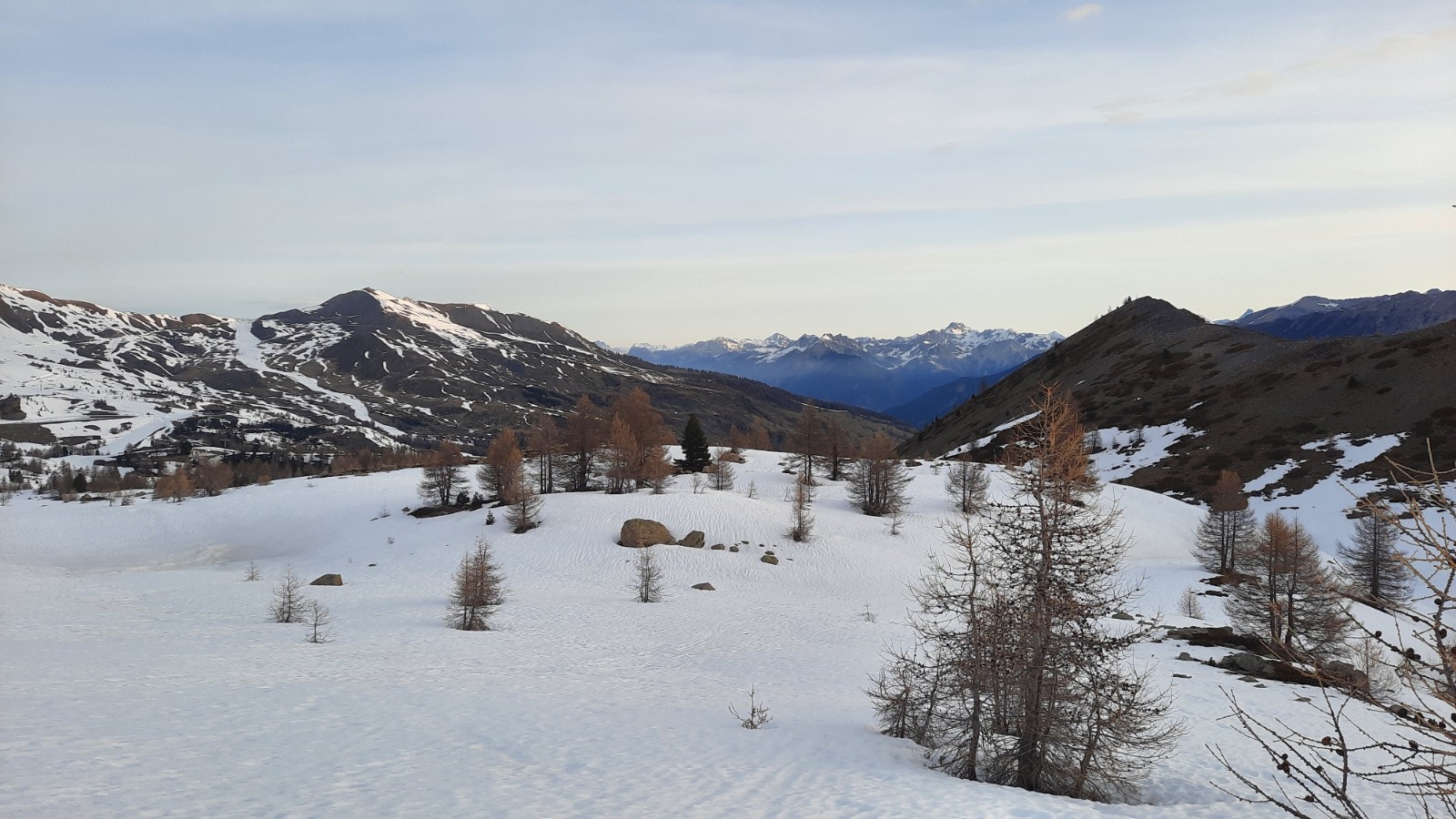 Conditions pour le ski : Moyen, l'apparition des nuages n'a pas laissé décailler la neige. Si le temps avait été ensoleillé, ç'aurait été moquette peluche toute douce.