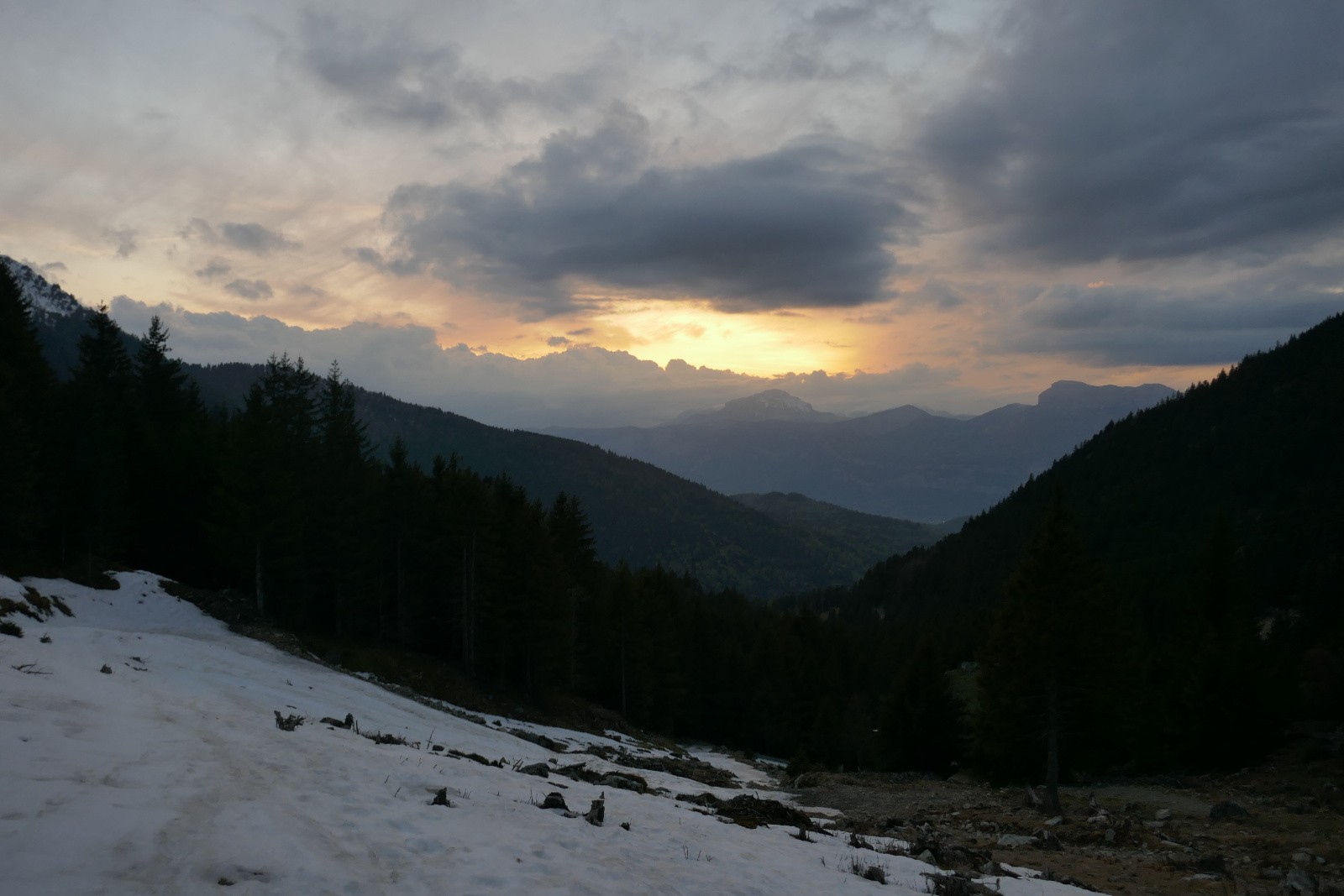 La suite est plus collante et il s'avère important de repérer les passages pour skier en continue jusque vers 1460m. Déchaussage et retour à la voiture juste avant la nuit.