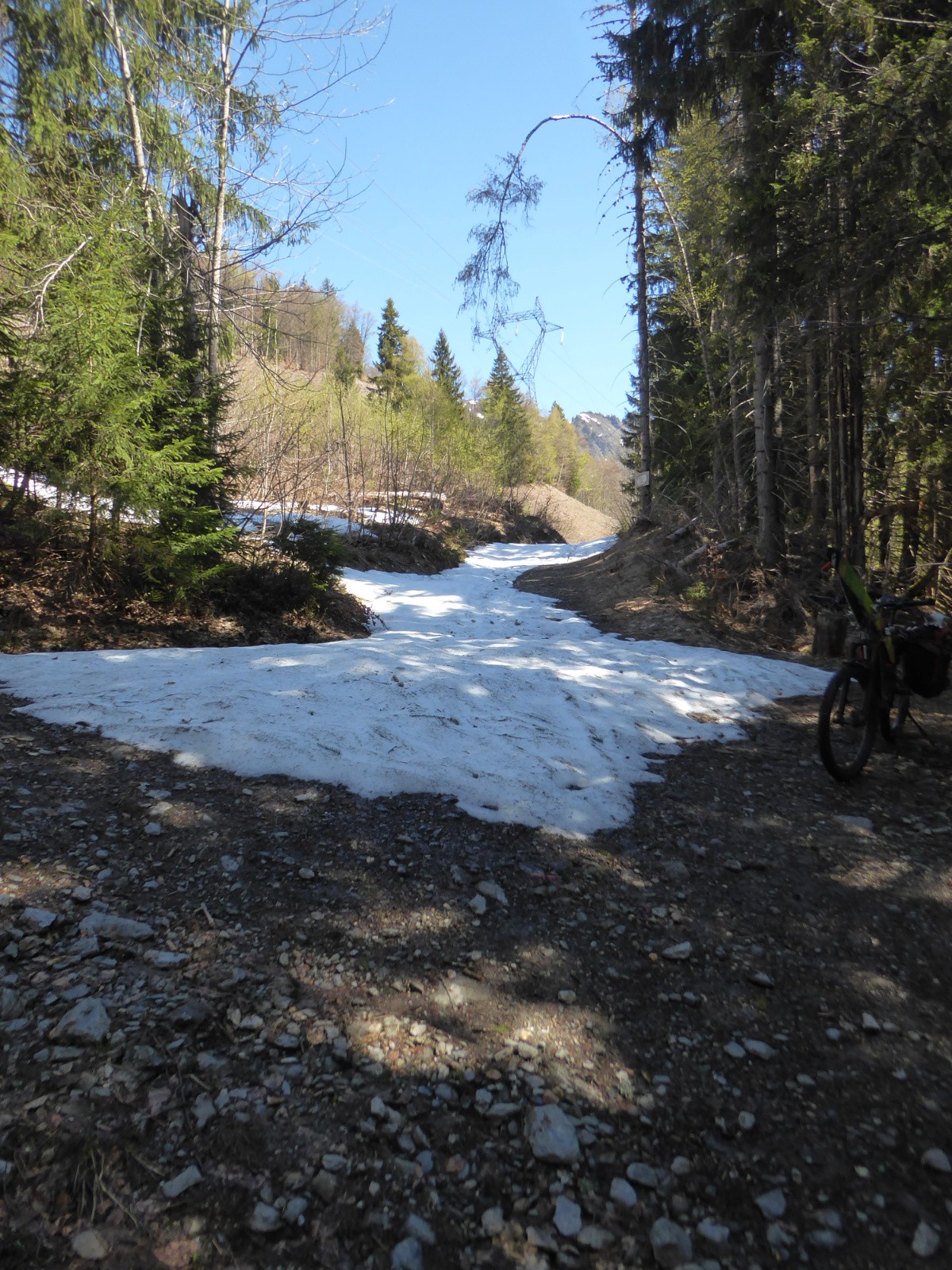 Conditions d'accès/altitude du parking : Route sèche et piste sèche vers la Chouette jusqu'au point 1389m, 2 névés à traverser et fin VTTAE au niveau de la barrière vers 1440m