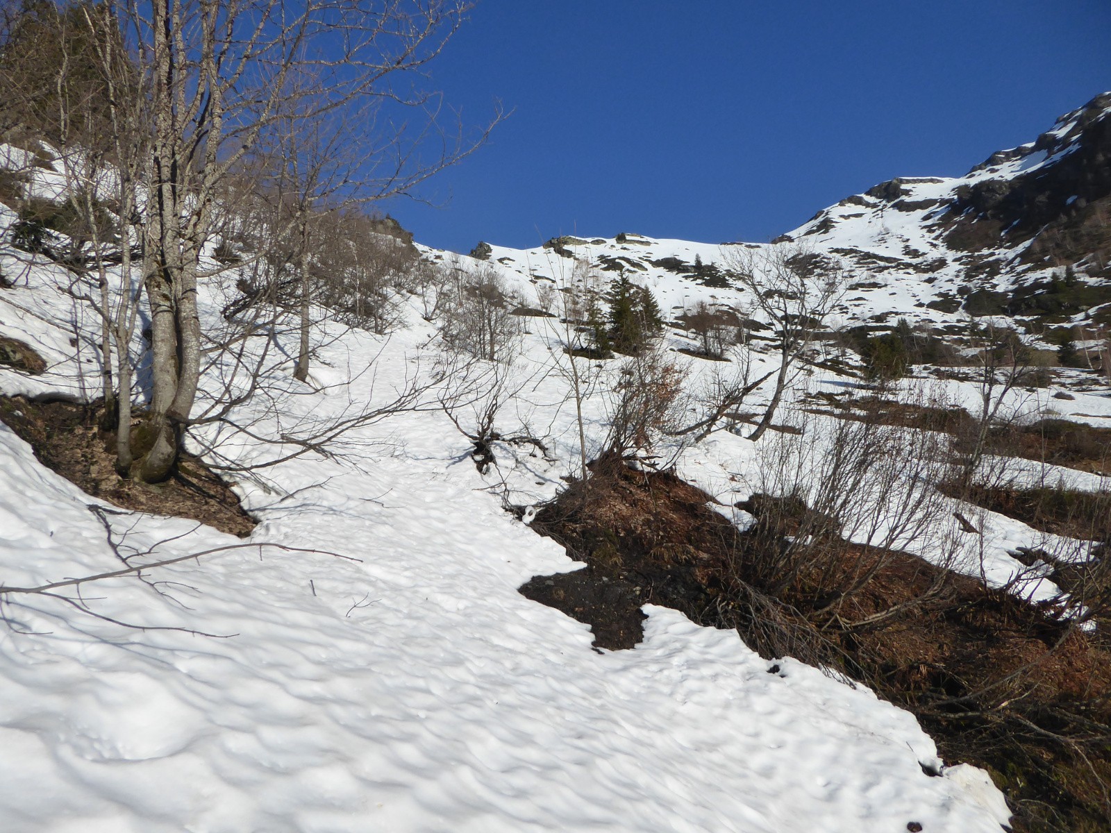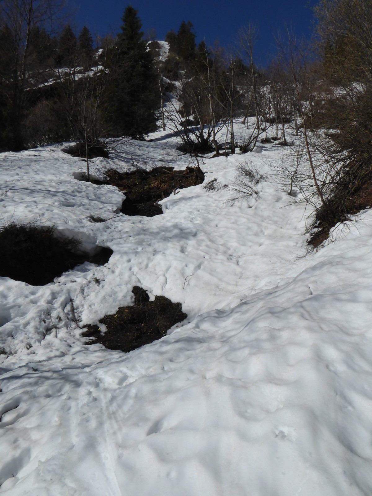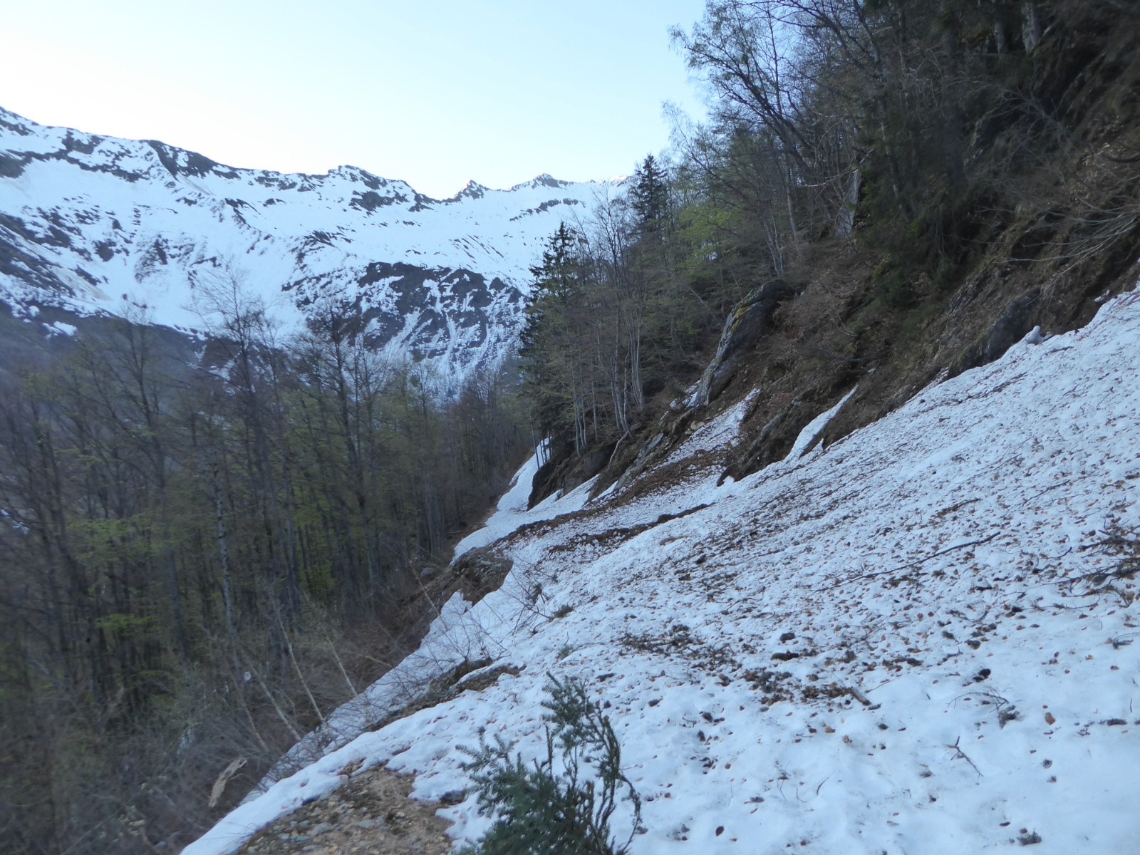 Conditions pour le ski : Neige dur le matin, ondulée jusqu'à 1600m, décaillée une fois au soleil, moquette ***** jusqu'à 1800m, puis **** jusqu'à 1600m, *** plus bas et la piste forestière depuis le ruisseau du Lac Noir en descente. J'ai déchaussé vers le passage des torrents vers 1550m sur 20m de dénivelé en montée, j'ai passé en descente sans déchausser en dérapage. Très bonne pioche au niveau parcours et enneigement très correcte pour un fin avril, cela ne durera pas longtemps en dessous de 1600m!