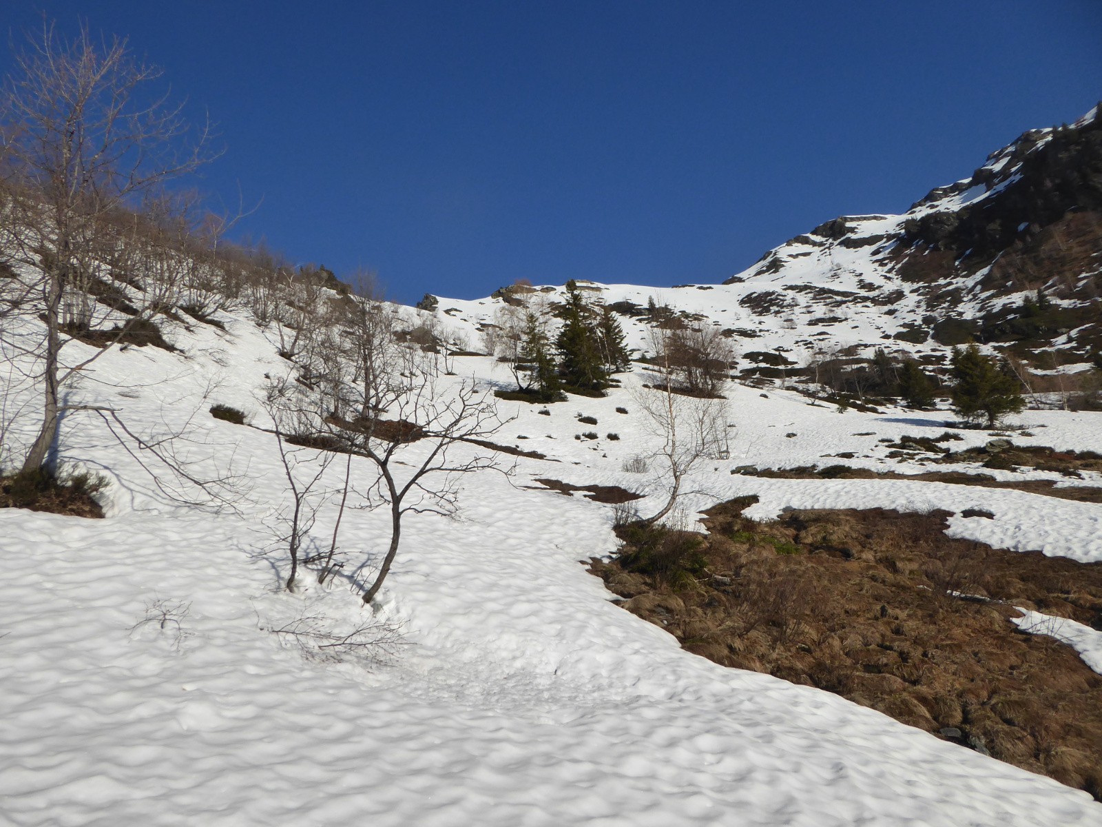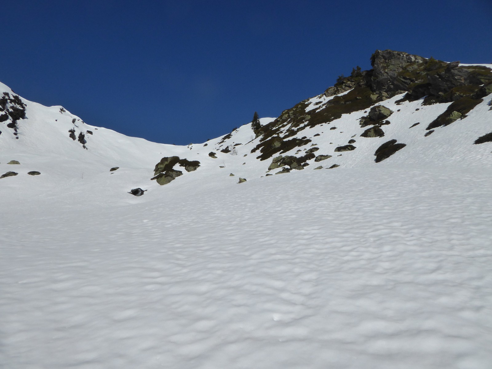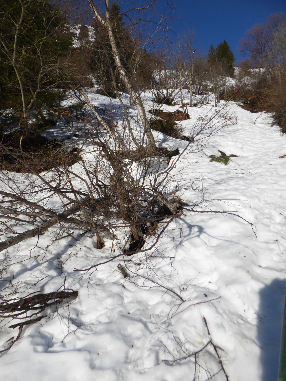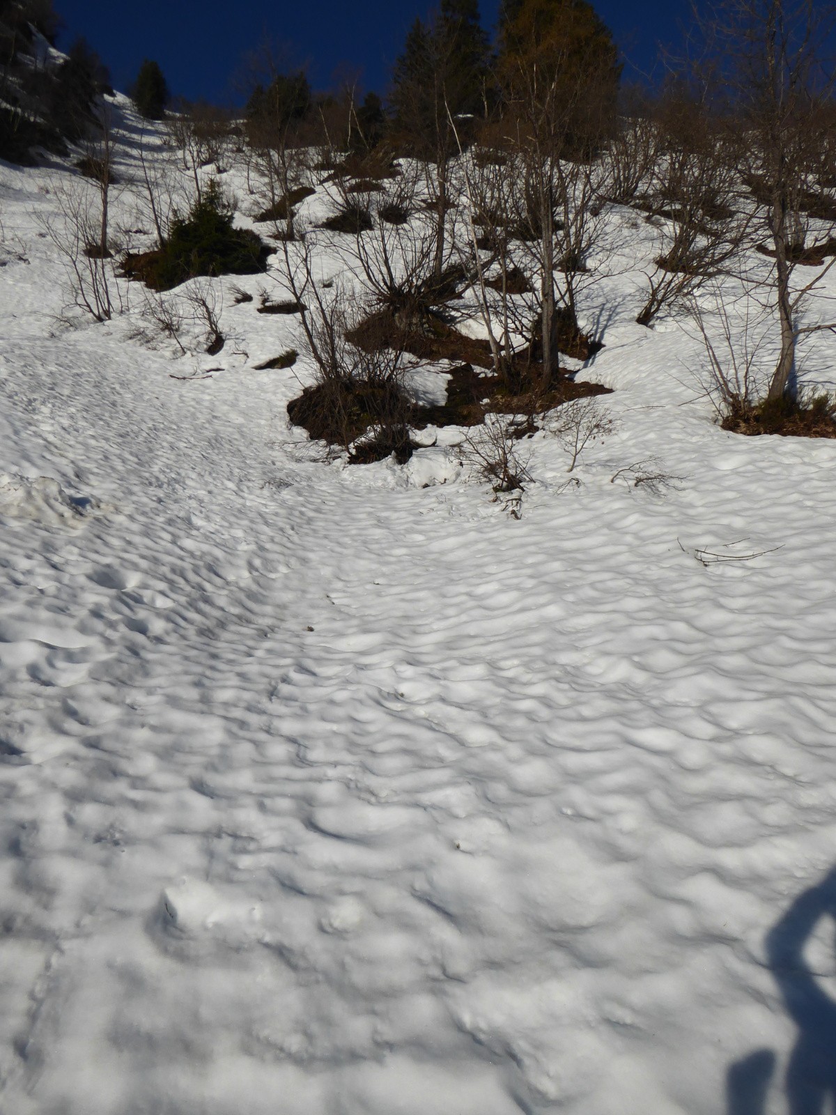 Conditions pour le ski : Neige dur le matin, ondulée jusqu'à 1600m, décaillée une fois au soleil, moquette ***** jusqu'à 1800m, puis **** jusqu'à 1600m, *** plus bas et la piste forestière depuis le ruisseau du Lac Noir en descente. J'ai déchaussé vers le passage des torrents vers 1550m sur 20m de dénivelé en montée, j'ai passé en descente sans déchausser en dérapage. Très bonne pioche au niveau parcours et enneigement très correcte pour un fin avril, cela ne durera pas longtemps en dessous de 1600m!