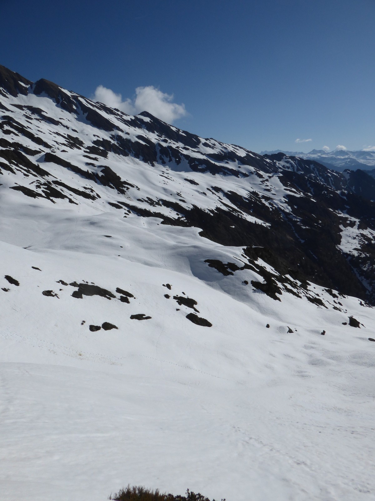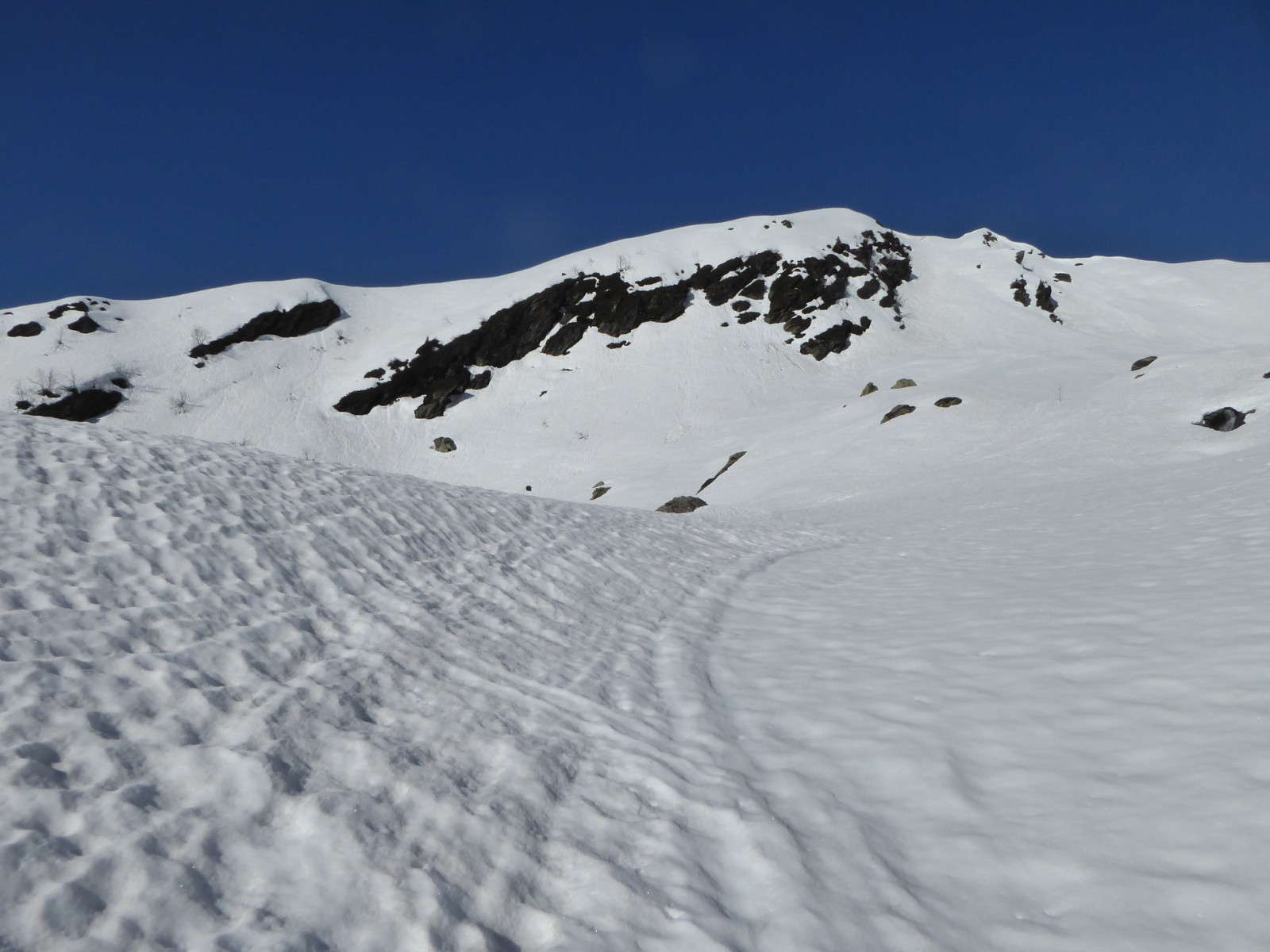 Itinéraire suivi : Départ en VTTAE depuis le Mollard, montée à Tioulévé, puis piste vers la Lognane par la Chouette et au dessus du sentier découverte, fin VTTAE à la barrière vers 1440m, ski au pied en suivant la piste jusqu'au passage du ruisseau du Lac Noir, puis vers l'est jusqu'à l'approche du Char de la Turche vers 1980m, je ne suis pas monté au sommet, passage trop exposé en devers et trop raid sur l'arête finale!