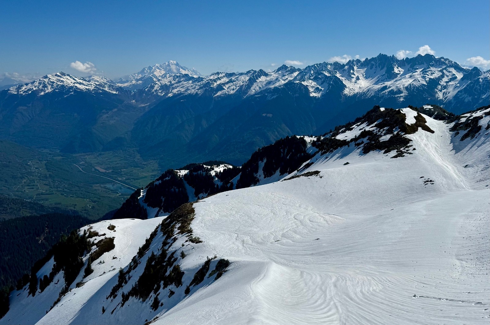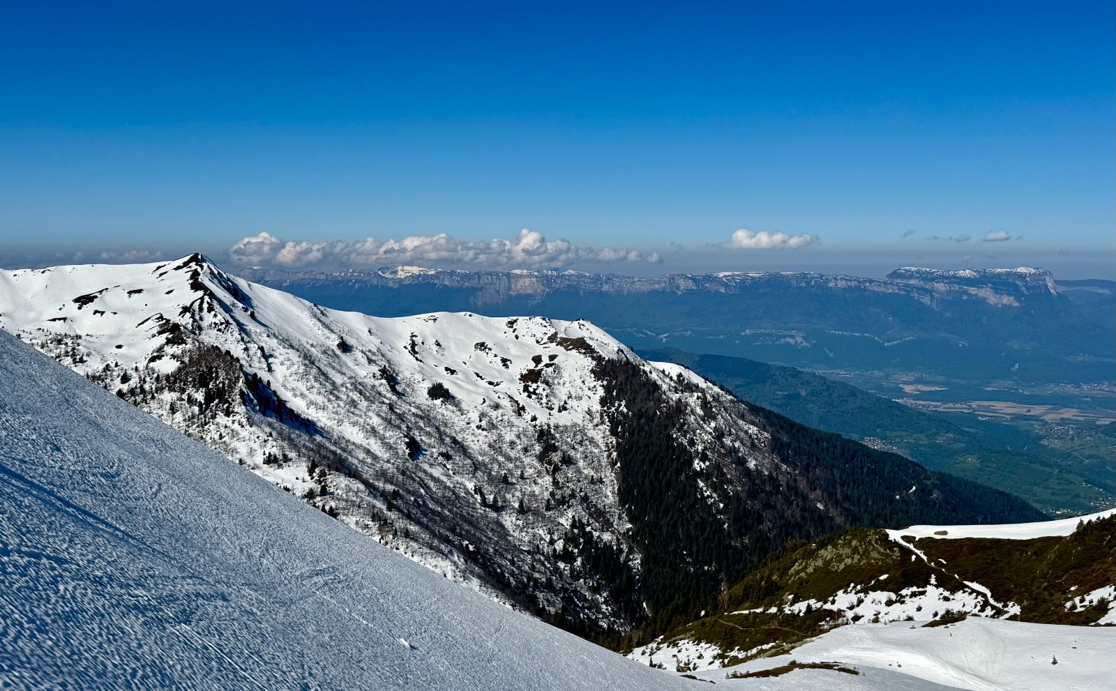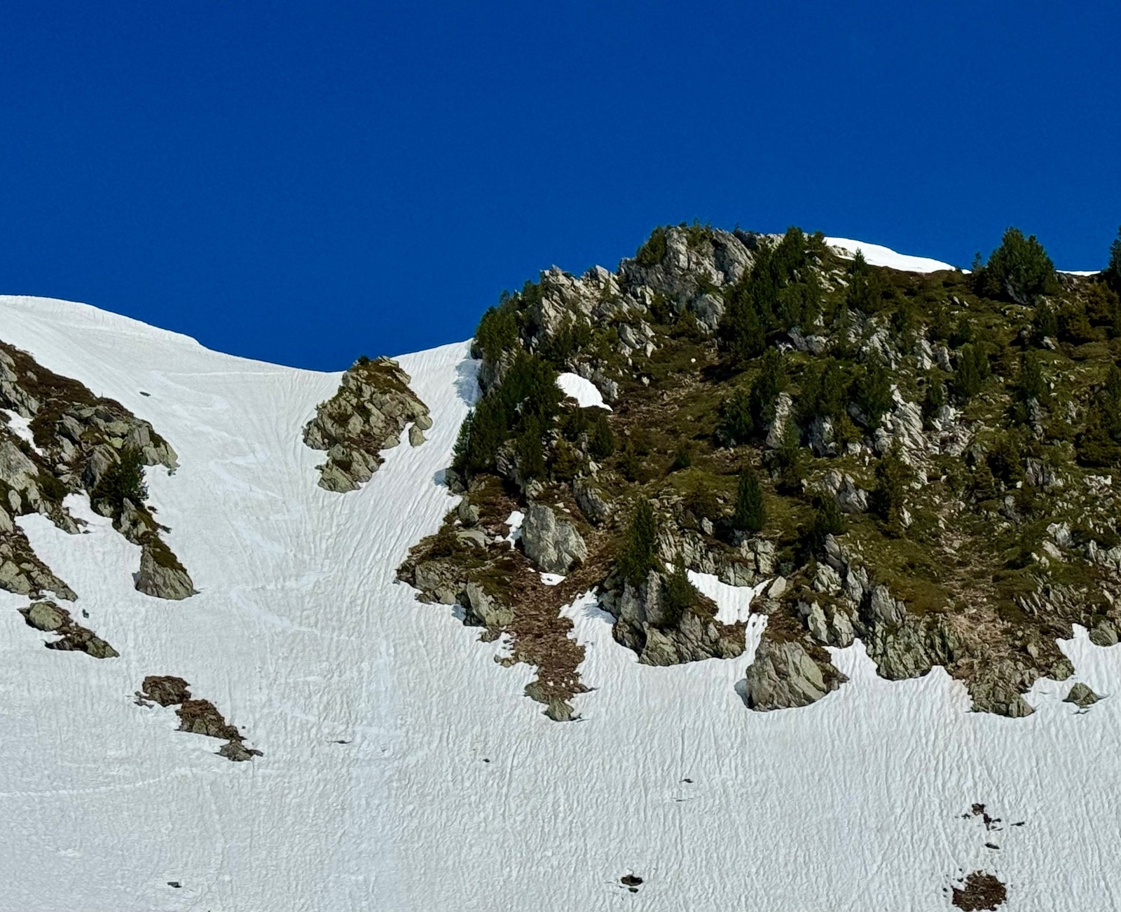 Conditions pour le ski : Manque de neige jusque 1600 environ, au-dessus manteau printanier bosselé.