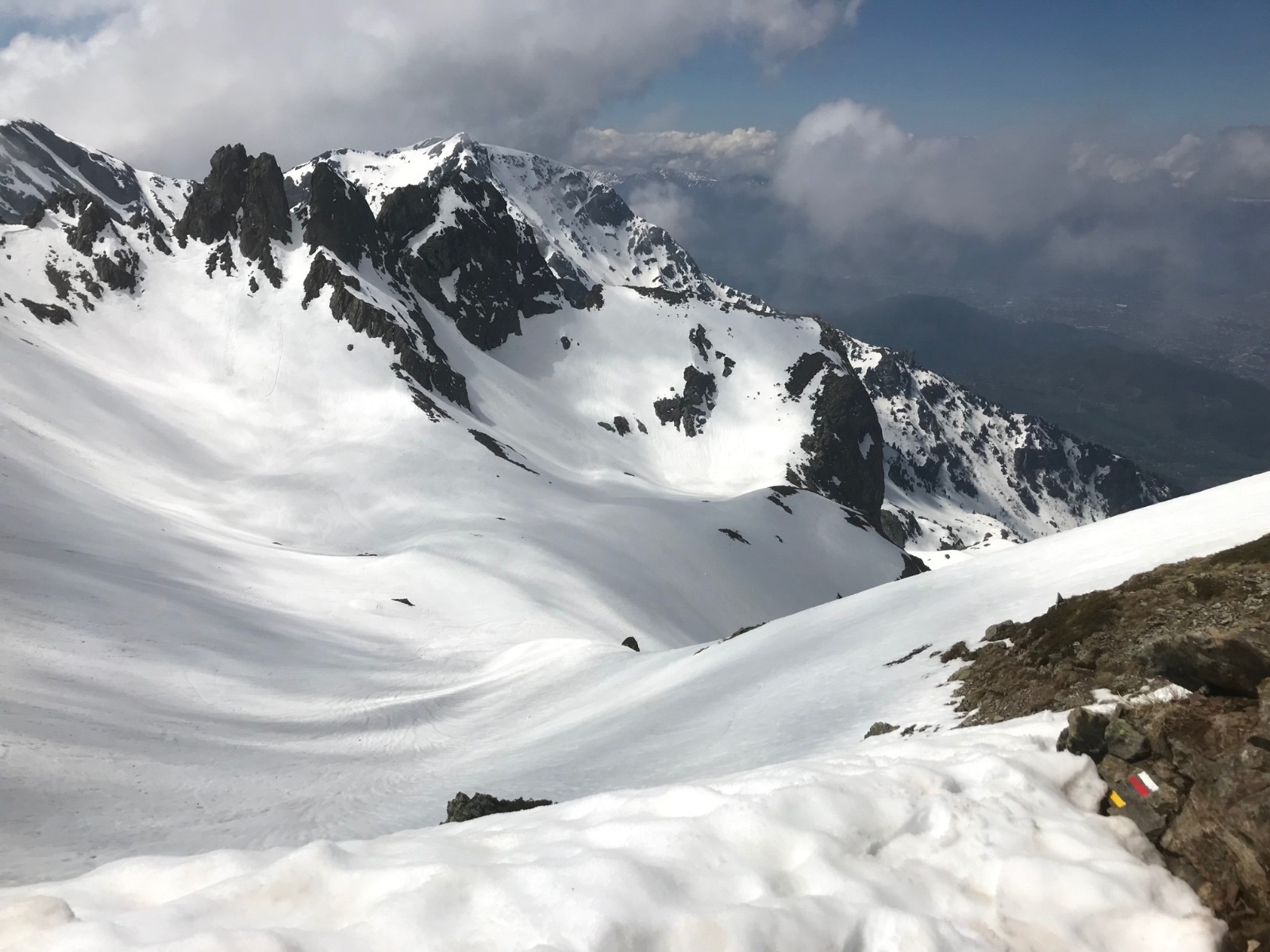 Conditions pour le ski : je craignais d’arriver trop tard au col des lances. Mais finalement, le regel est profond, la neige bien tassée et elle a été très agréable dans toutes les pentes pourtant très variées en orientation et altitudes.