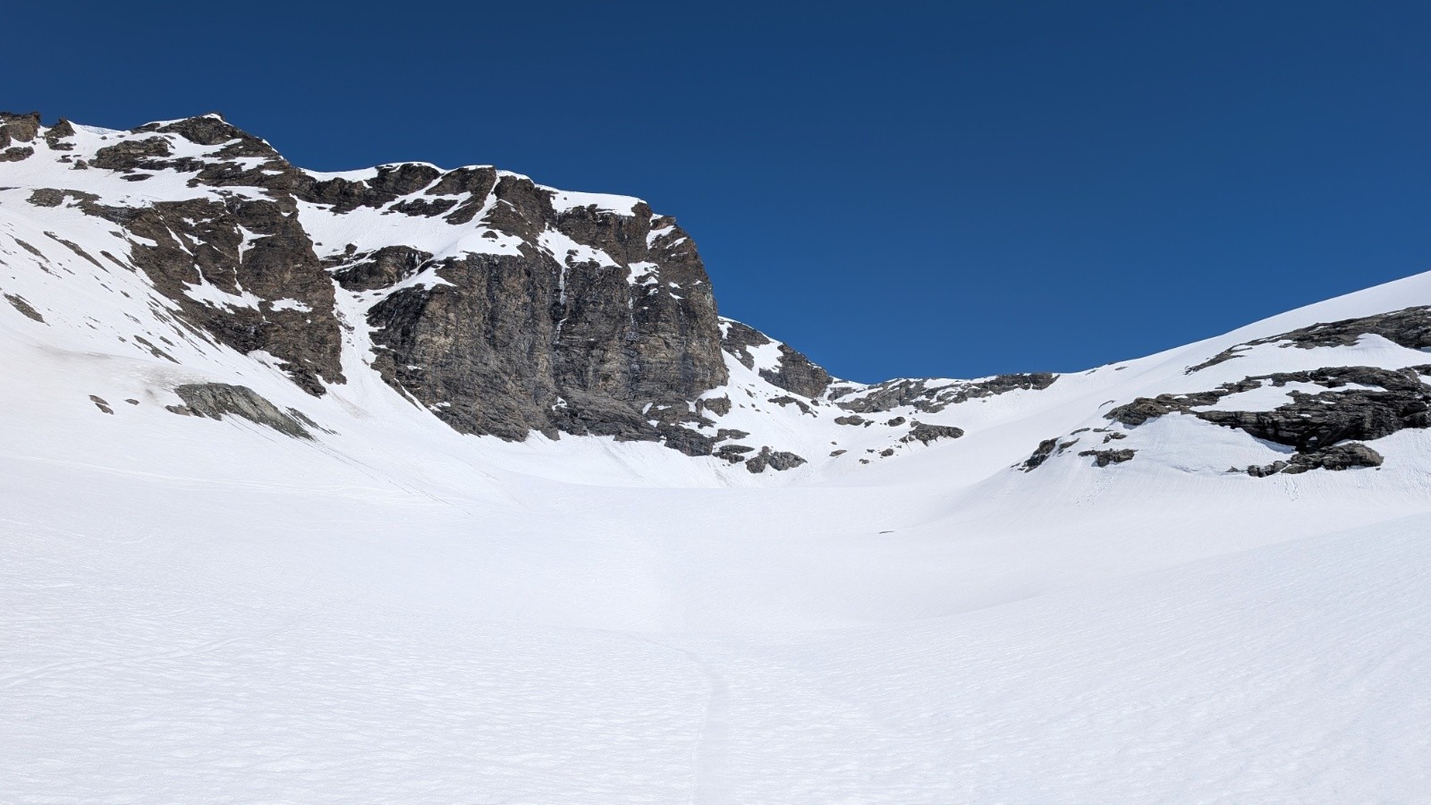Descente très sympa avec quelques virages en poudreuse au tout début. Un peu de soufflée / cartonnée, puis neige dure. Avant la fin du glacier, c’est moquette dans les grandes largeurs avec une vue superbe sur le Charbo. Rando magnifique mais exigeante physiquement.