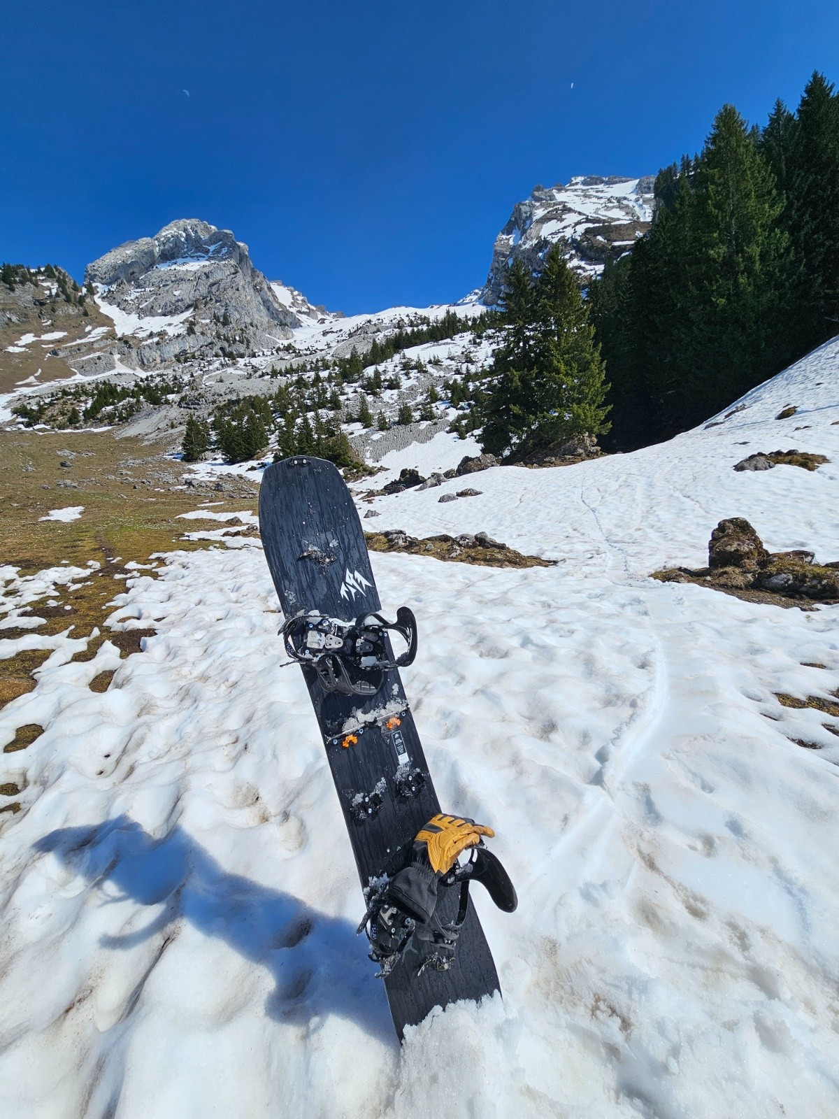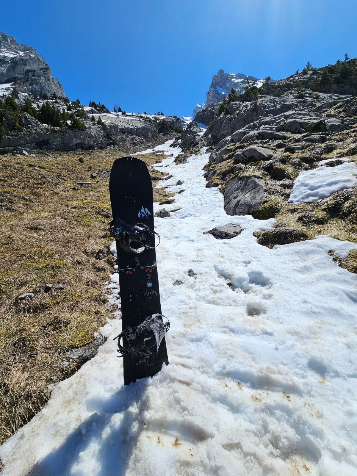 Conditions nivo et activité avalancheuse : anciennes coulées de neige lourdes sous roche perfia et tête pelouse et quelques reptations dans les dalles à gauche de tête pelouse