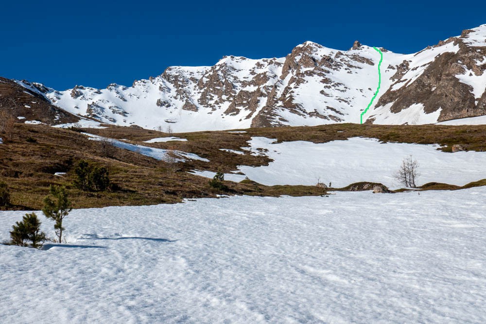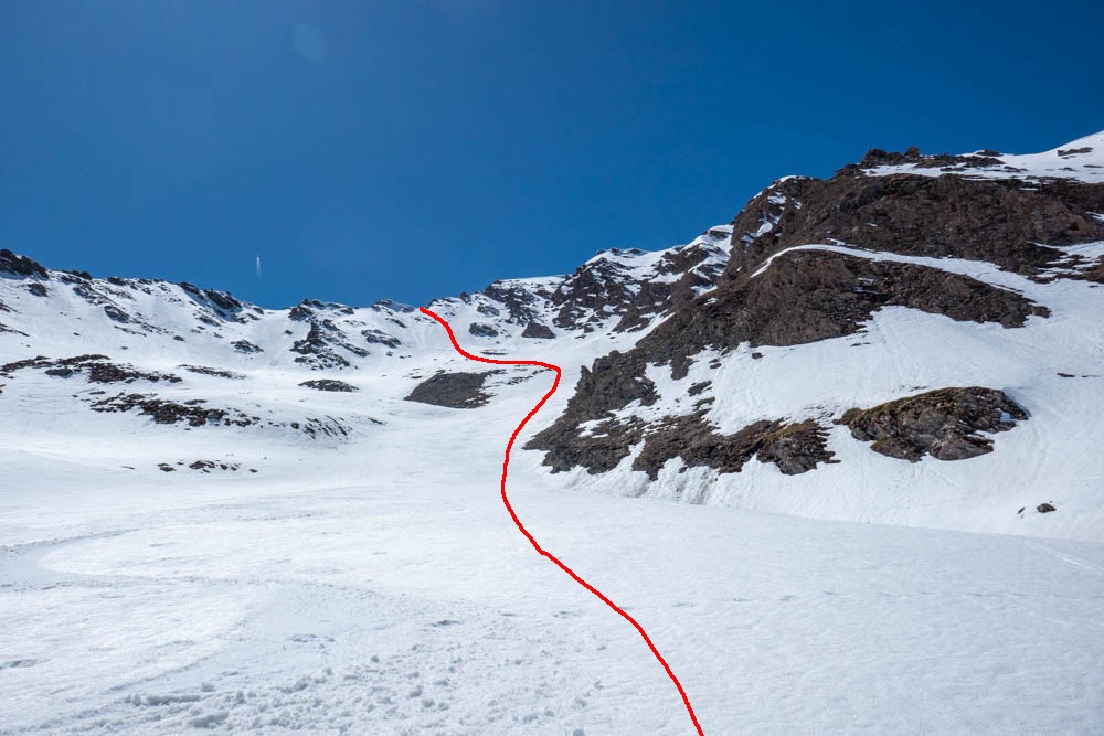 et de l'autre côté que vois-je ?! encore un beau couloir NE qui arrive pile sous le sommet de la pointe du Clot !