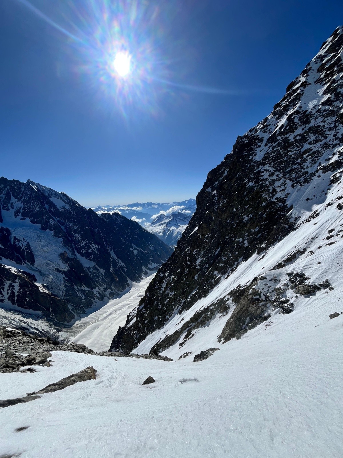 Puis remonter du glacier dans la fraîcheur du catabatique. Content de trouver le soleil en haut de la rampe.