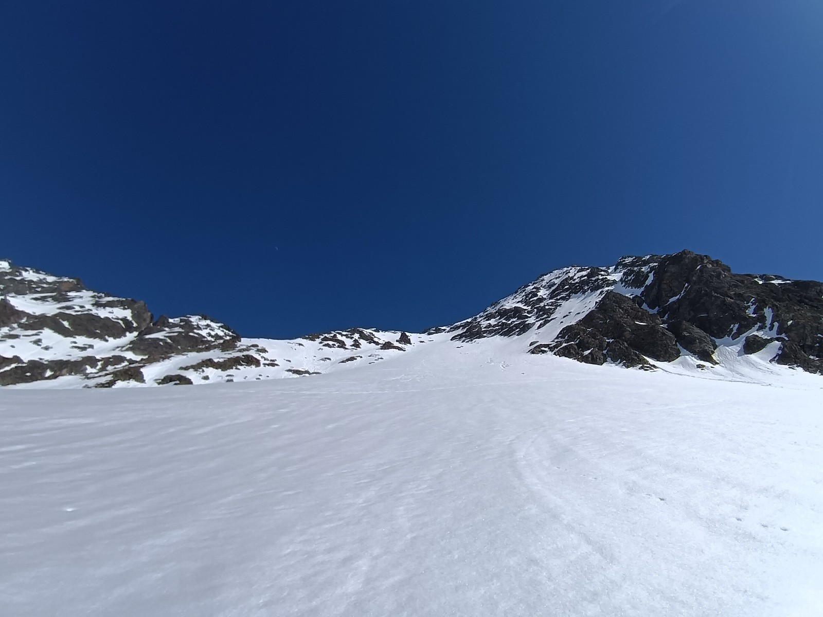 Itinéraire suivi : Main droite de l'arête dans la montée au col, conformément au topo.