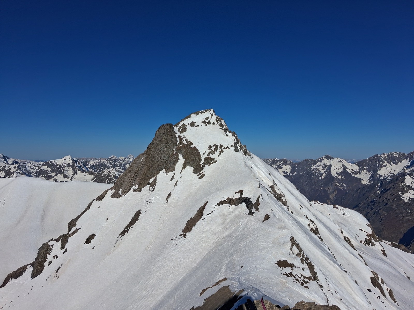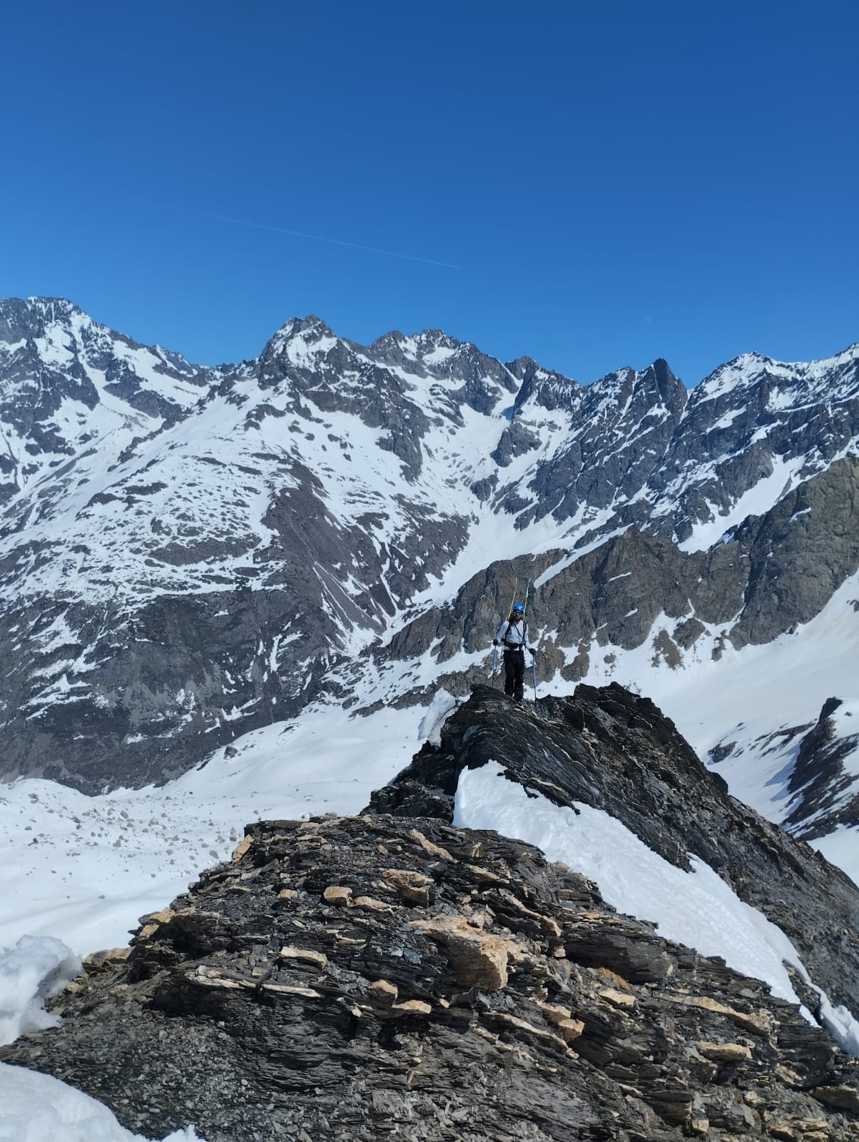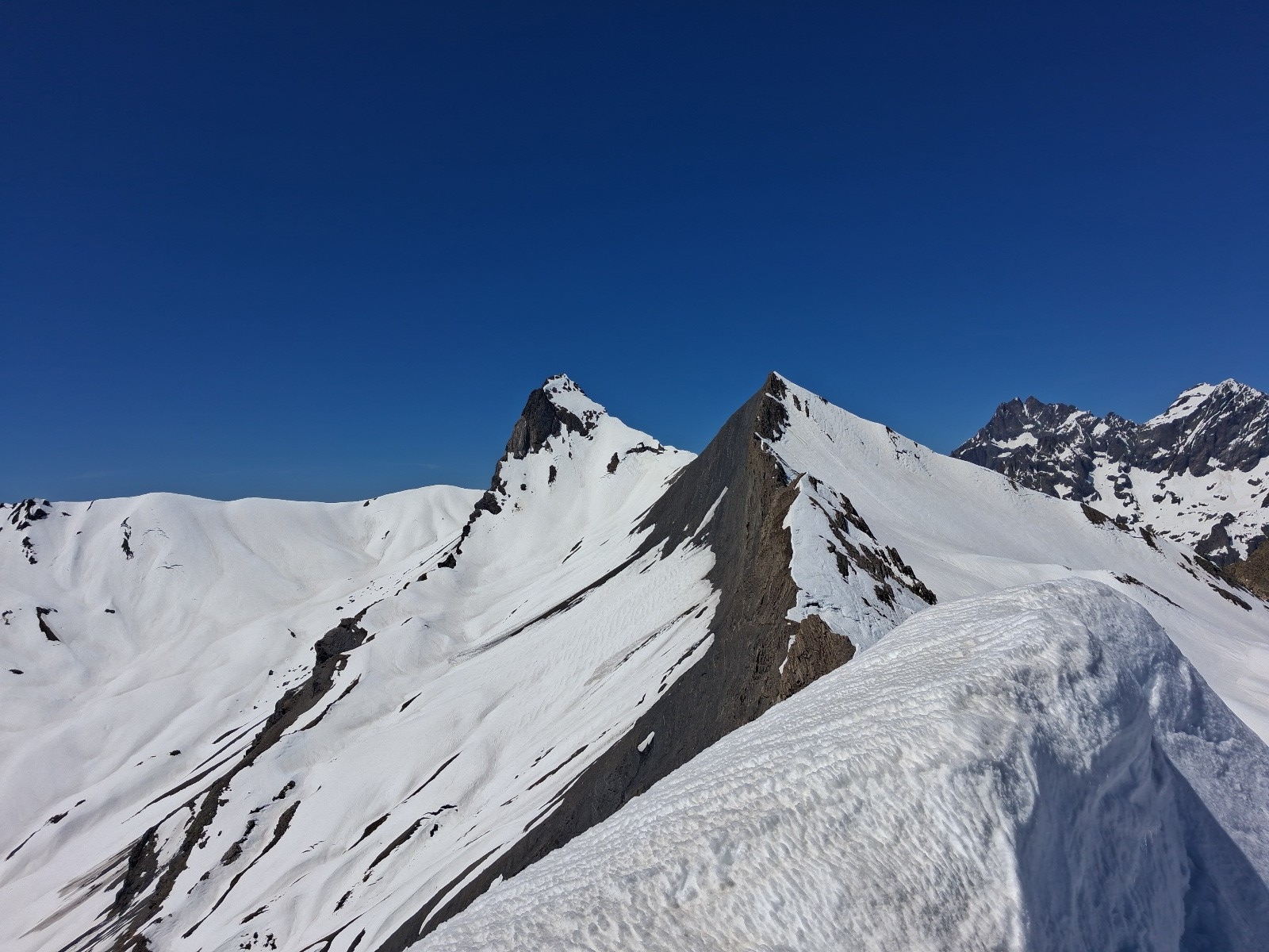 Itinéraire suivi : Montagnon, Aiguille de Morges, descente jusqu'à 2450m, Montagnon, descente 2400m, Pic de Vallonpierre (fin sur l'arrête en schistes délités abo), Clos Civier, parking