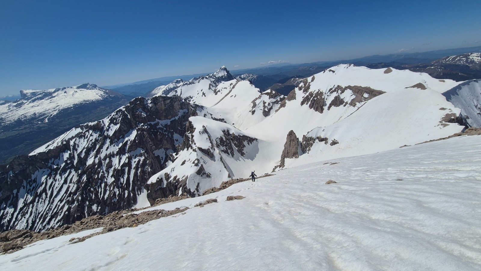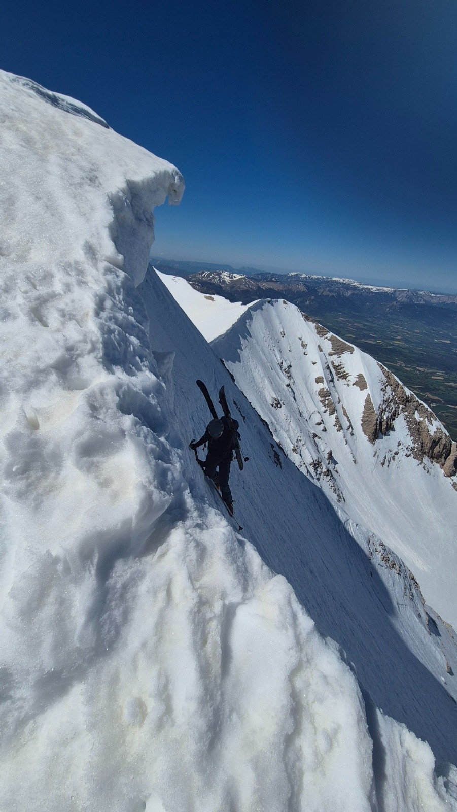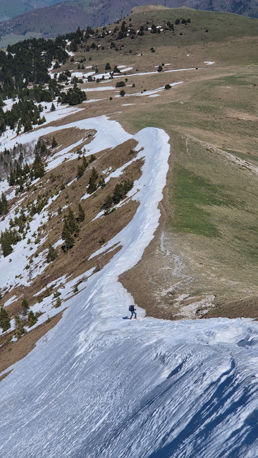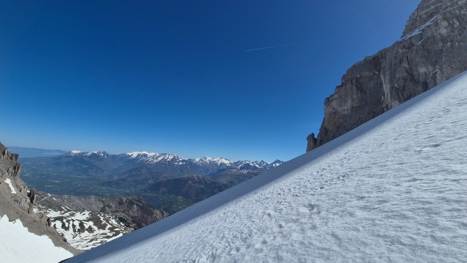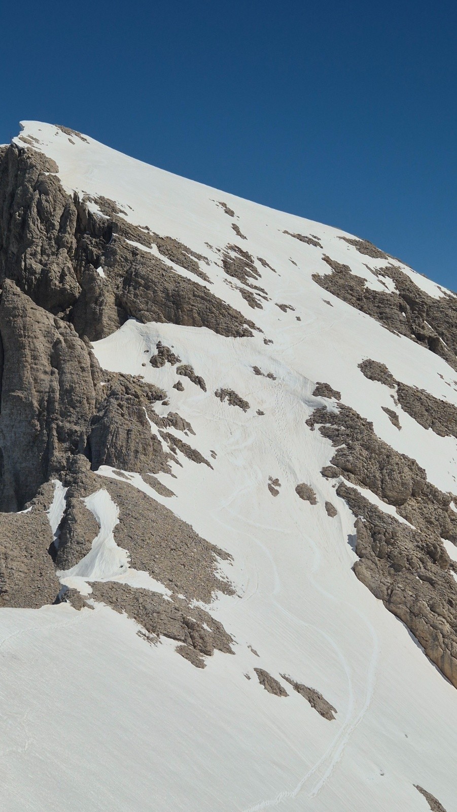 Concernant le malpasset, c est une autres histoire, nos prédécesseurs ont été plus patients que nous et l auront en bien meilleurs conditions. Il aurait fallu attendre encore 1 ou 2 heures, et meme pas gagné ? Du coup, on optent pour une descente prudente en crampons sur les 50 premiers metres avant de chausser sur une petite plate forme et profiter d une neige correcte dans la suite du couloir puis d une bonne moquette dans la combe. 🤩