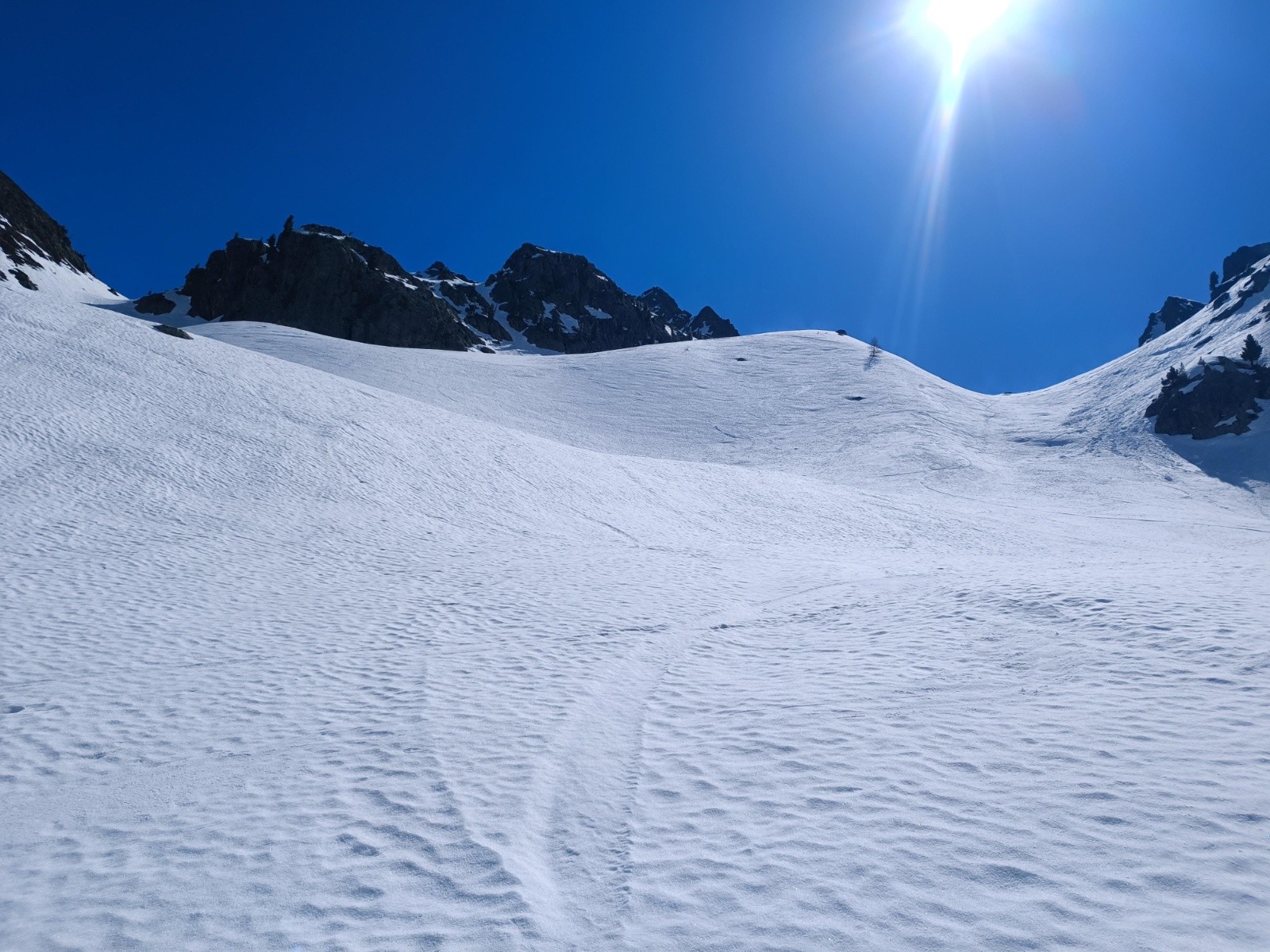 Conditions pour le ski : decaillage relativement lite compte tenu de la saison et de l'ensoleillement