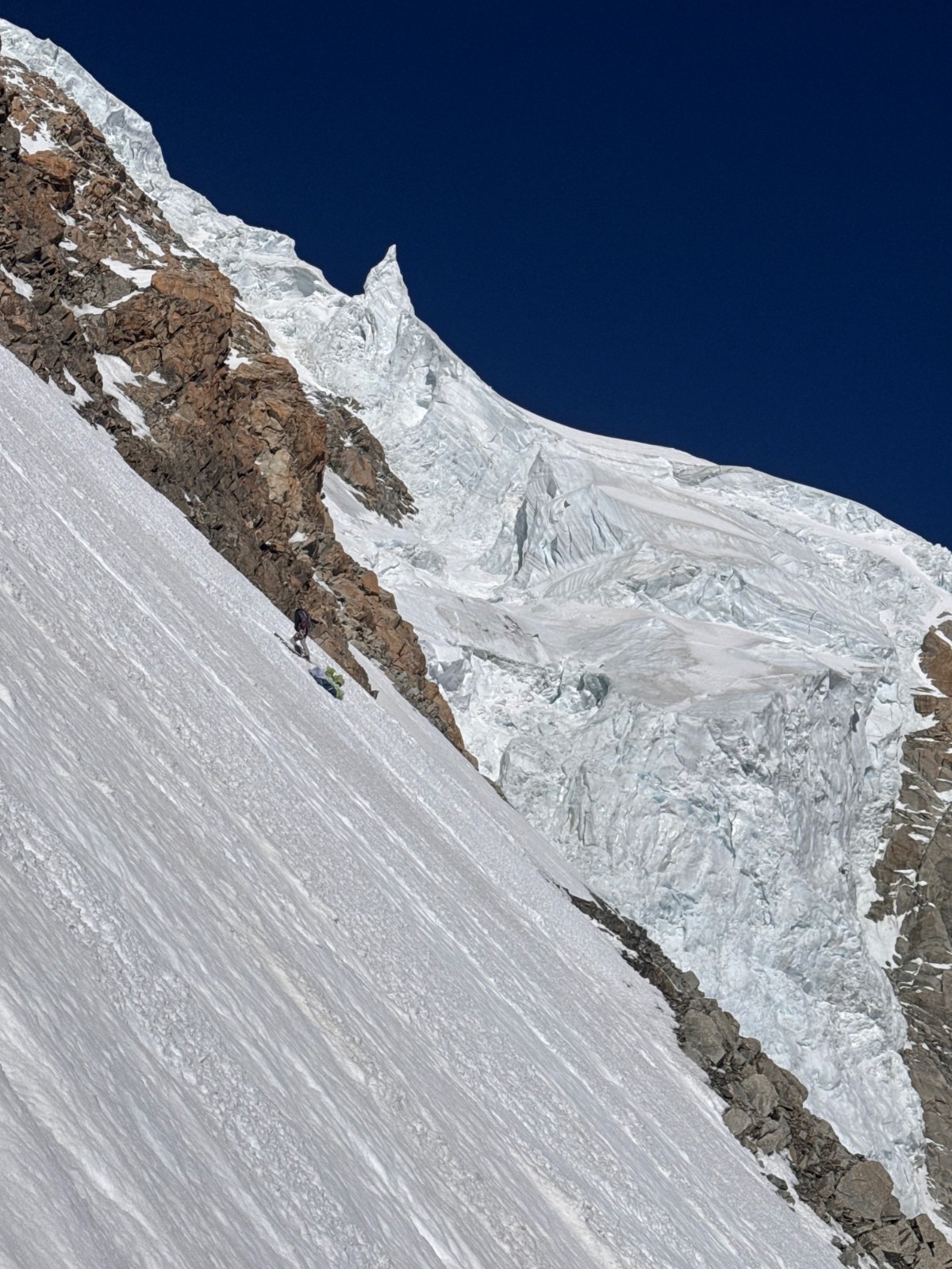 Premier Mt Blanc pour Elias, un Saudan, on part du col du Midi en Speed pour poser aux grands Mulets, juste en dessous. Pas besoin d’être trop matinaux de toute façon. Premier mt blanc de la saison pour moi après quelques lignes là haut malgré la sécheresse.. Couloir du Diable, Tardivel de la Brenva il y a quelques temps, et des vols en speed dans le secteur.
