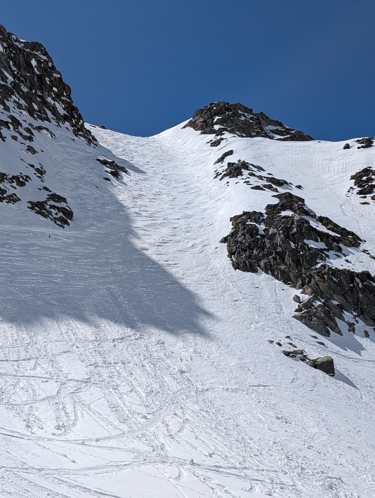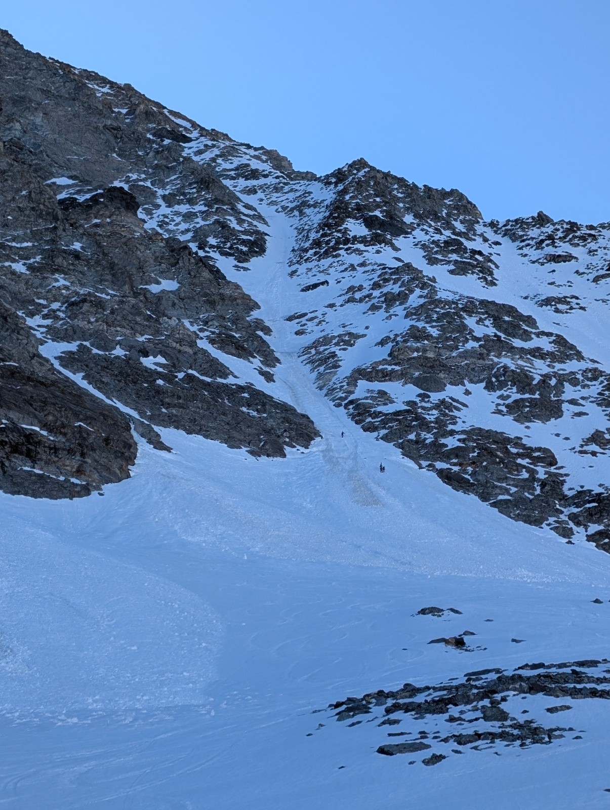 Conditions nivo et activité avalancheuse : Le couloir d'Hannibal avait purgé. De bonnes traces de montée.