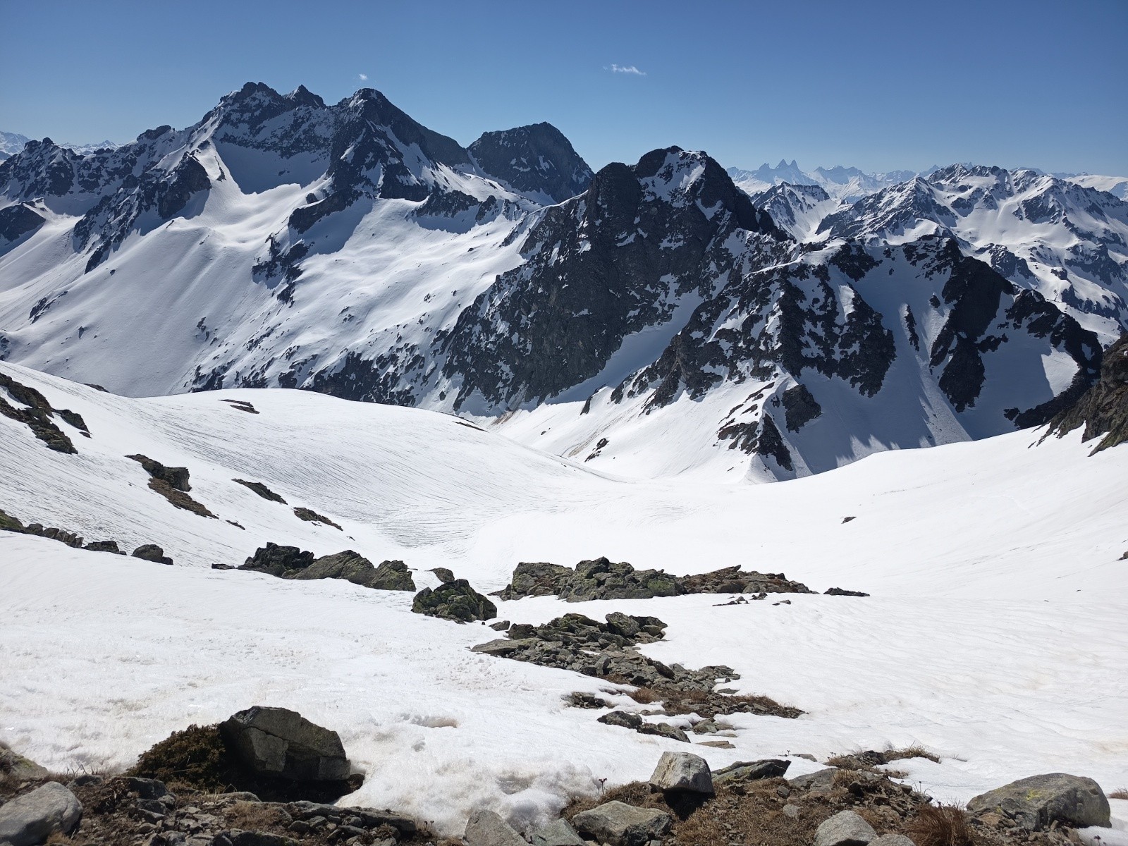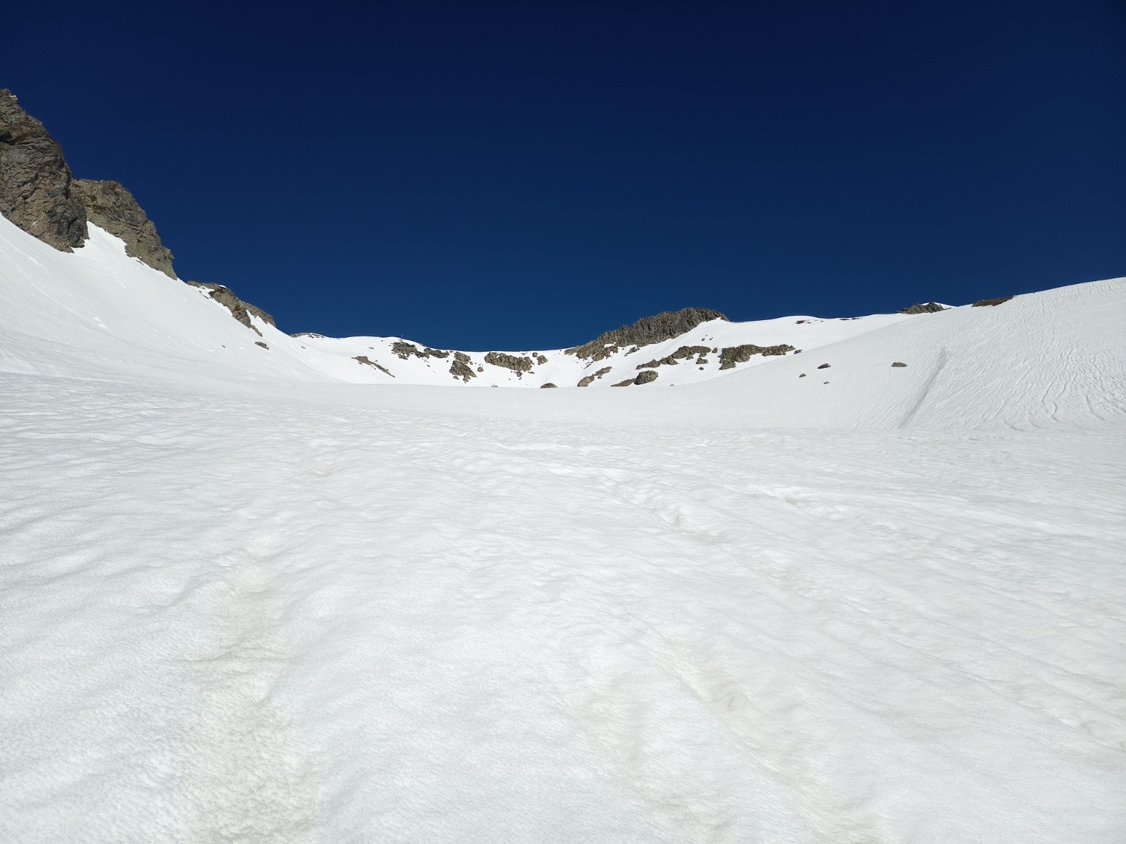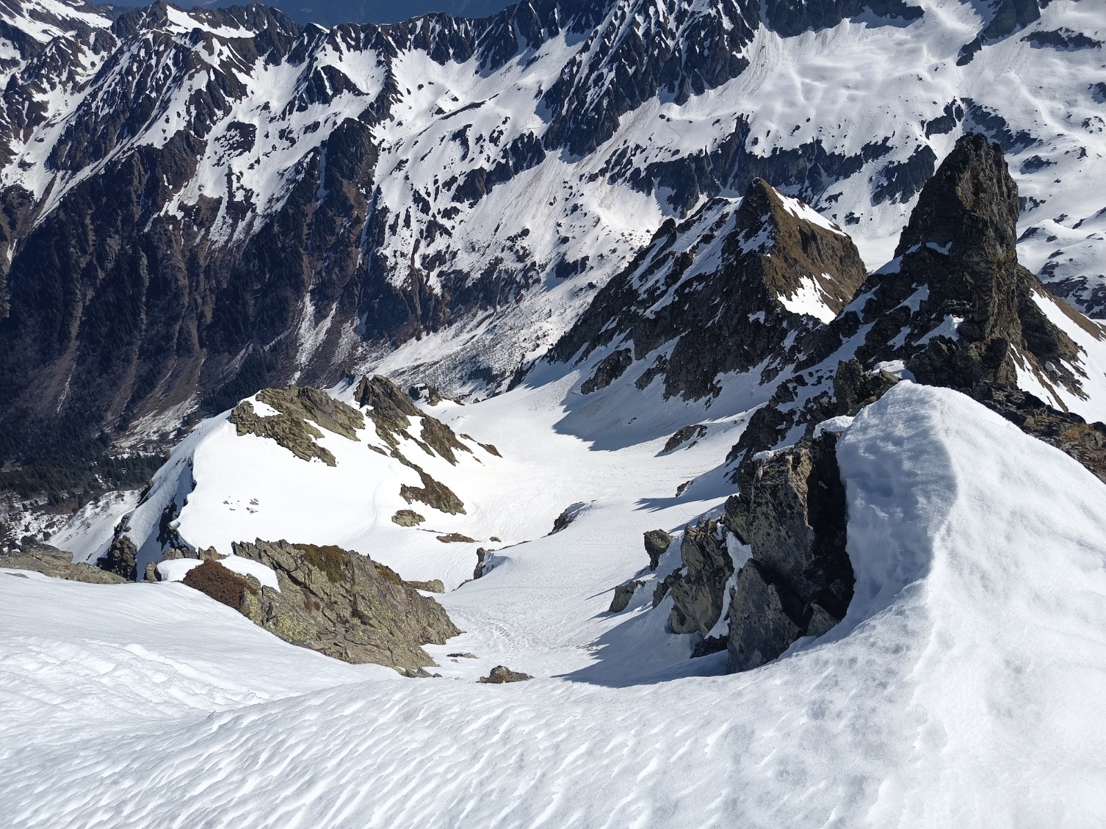 13h00 Face N du petit Charnier, rive droite neige dure avvec bon grip et petite moquette, très agréable à skier rive gauche